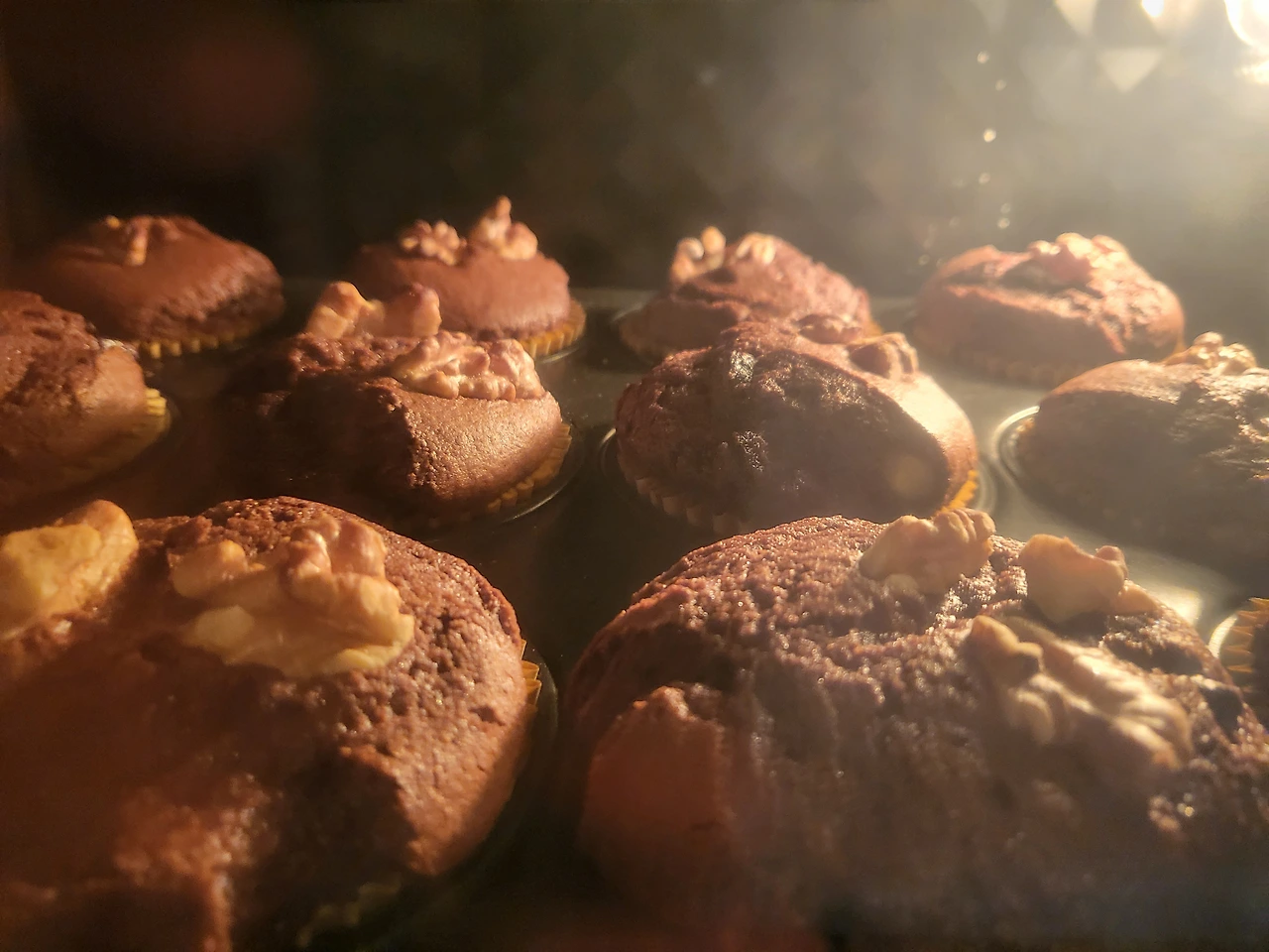 밤에 잠도 안 와서 초코머핀을 24개나 구웠다.