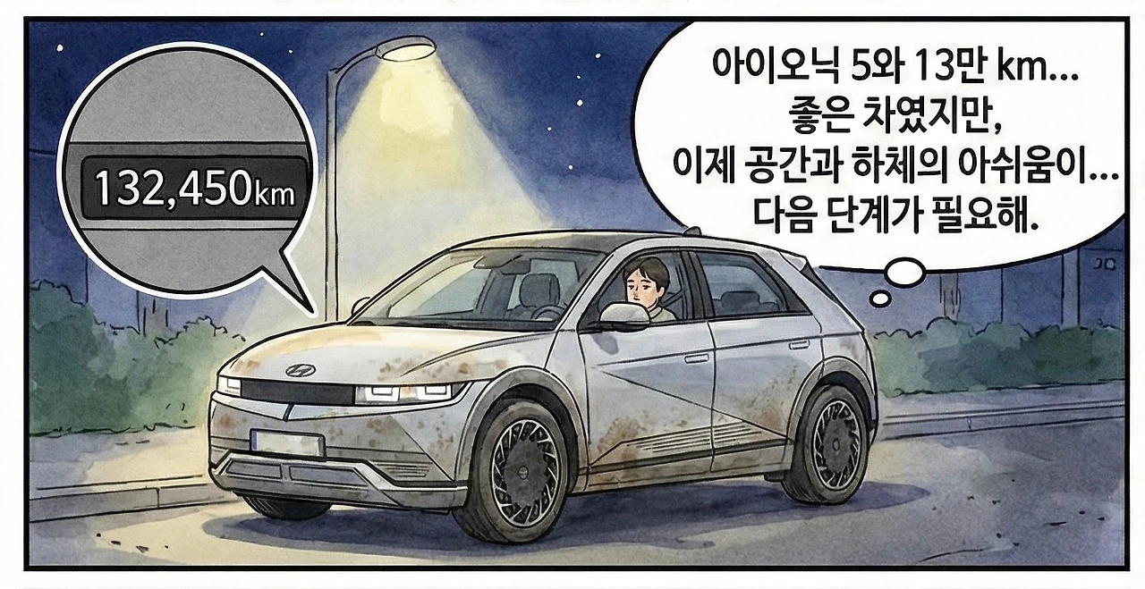 아이오닉 5는 좋은 차였다. 적어도 전기차라는 관점에서 보면, 충분히 잘 만든 차였고, 한국 도로 환경에 잘 맞는 플랫폼이었다. 전기차 특유의 정숙함, 즉각적인 토크, 그리고 차 안에서 보내는 시간이 길어질수록 체감되는 편안함도 분명했다. 다만 시간이 쌓일수록, 그리고 주행거리가 늘어날수록 보이기 시작한 것들도 있었다. 공간 대비 체급의 한계, 하체에서 오는 아쉬움, 옵션과 가격 사이의 간극 같은 것들이다. 처음에는 잘 느껴지지 않던 부분들이, 10만 킬로를 넘기면서 점점 또렷해졌다.