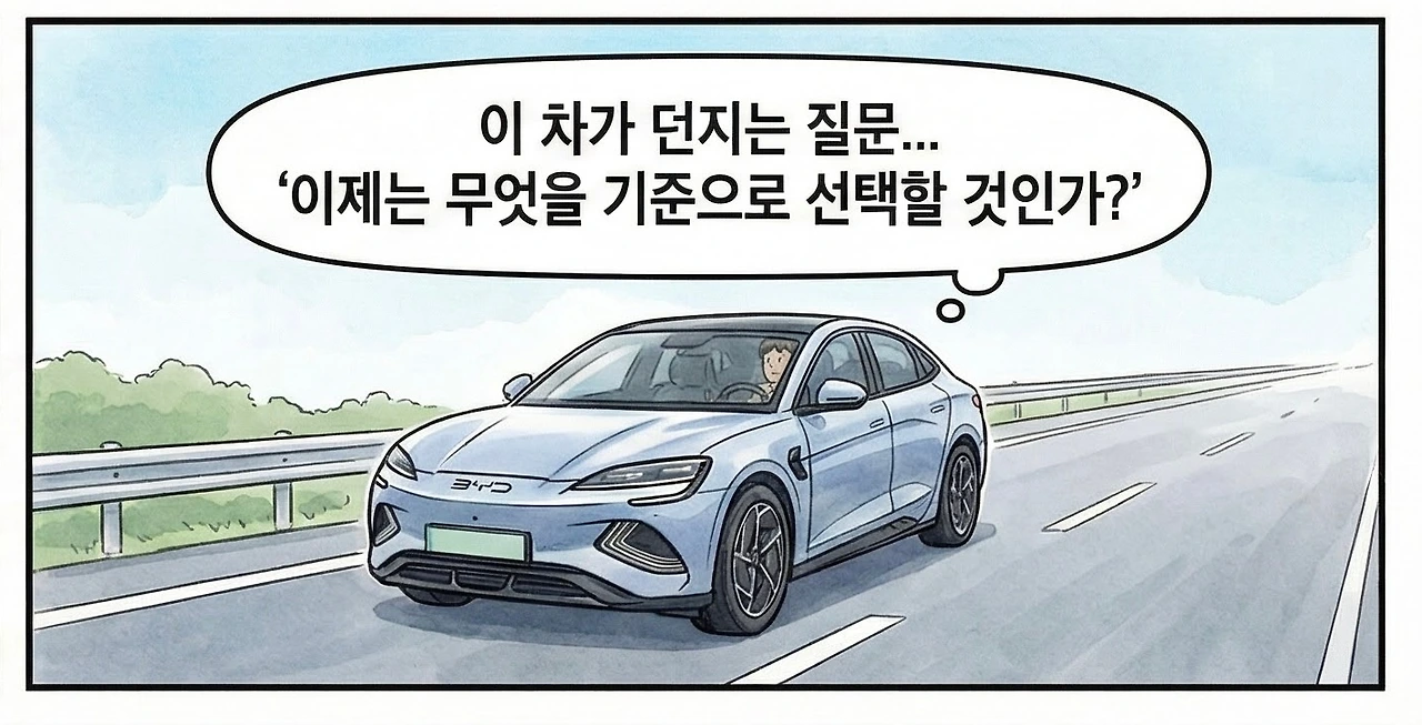 이쯤 되면 생각이 정리된다. 이 차는 내 선택을 끊임없이 변호하게 만드는 차가 아니라, 내 기준을 다시 확인하게 만드는 차다. 그리고 어쩌면, 이 불편함 자체가 지금 우리가 겪고 있는 변화의 징후인지도 모른다. 가격, 브랜드, 원산지로 세상을 나누던 방식이 조금씩 균열을 일으키고 있다는 신호 말이다.