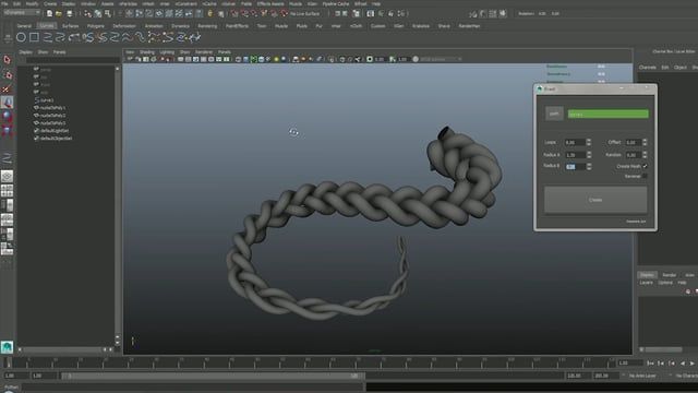이 플러그인은 highend3d라는 웹사이트에서 무료로 제공되곤 했었는데, 그 사이트가 폐쇄되어 더 이상 다운로드 받을 수 없게 된 플러그인입니다. 커브를 생성하고 선택한 뒤 매듭 개수, 해상도, 두께감(테이퍼링)값을 입력하면 폴리곤 모델이 자동으로 생성됩니다. 필요하신 분들이 있다면 댓글로 이메일 주소를 남겨주시면 공유해드리겠습니다.