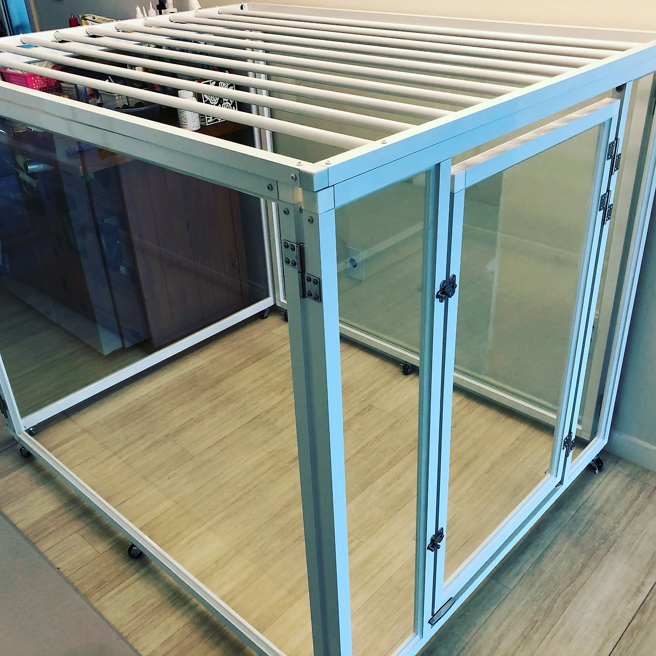 저는 먼저 강아지가 편히 쉴 수 있는 장소를 마련했어요. 병원에 있는 병실과 유사한 병실을 집안에 만들고, 강아지가 위로 다리를 들며 뛰지 않도록 천장도 만들어 줬어요. 그리고 강아지가 오랜 시간 동안 시간을 보내야 하는 그곳이 어둡고 외로운 곳이 되지 않도록 집 전체를 유리로 만들어 줬죠. 우리집 강아지는 수술 후 병원에서 일주일 정도 입원을 하고 집에 와서인지 생각보다 그 안에서 잘 적응하는 것 같았어요. 하지만, 병원에서는 병실 안에서도 대소변을 잘 보던 녀석이 이 집에선 절대 대소변을 보지 않았죠. 그래서 일정 시간에 맞춰 거실로 나올 수 있도록 해 주고 있어요.