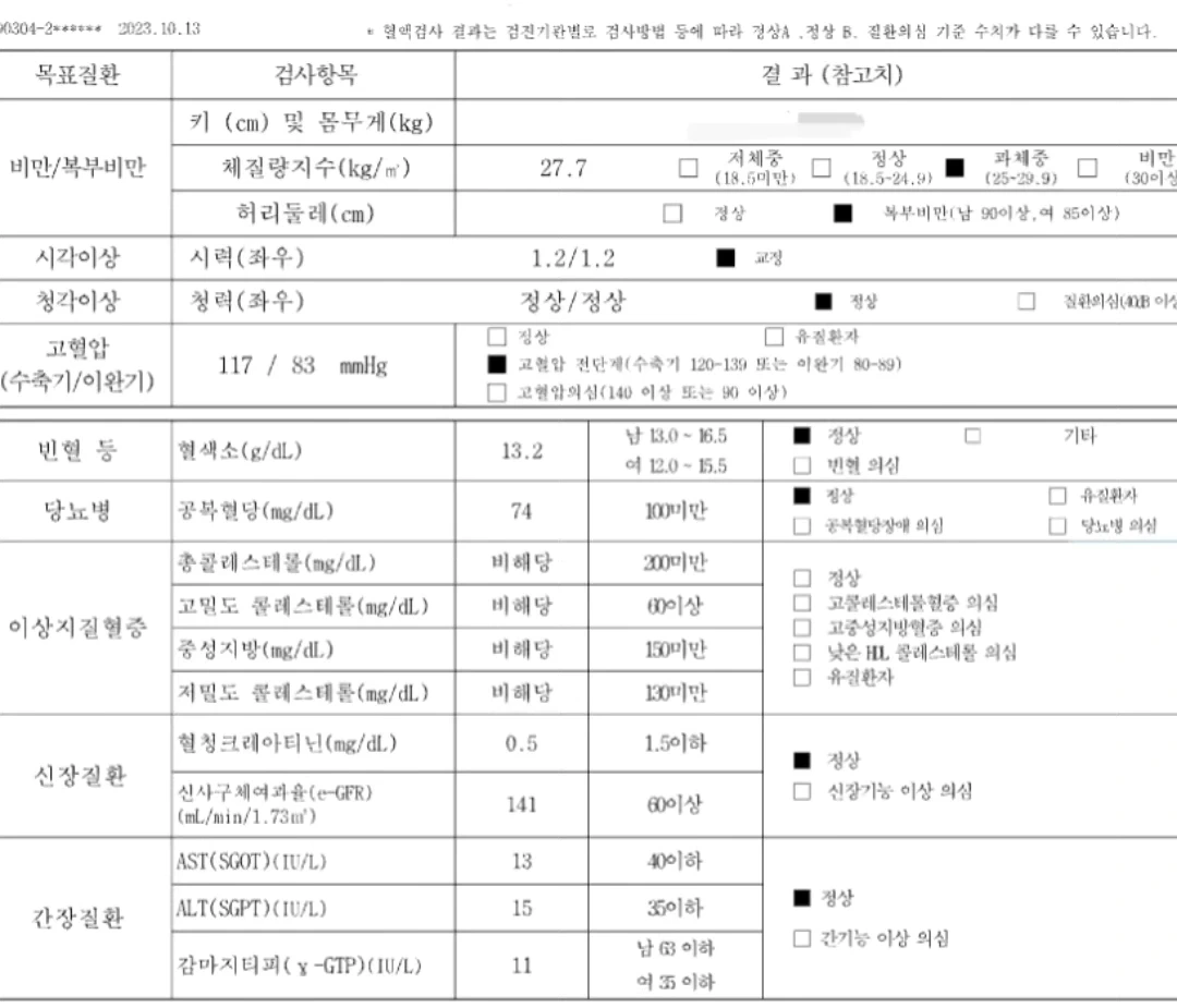 나는 89년생으로 올해 국가 건강검진 대상자이다. 검진 결과가 궁금했는데 ‘고혈압 전단계’라고 한다. 다행인 것은 지난번에 비만이었는데 임신 내내 고생을 하고 살이 빠져서 과체중이 되었다. (조금 웃길 수도 있는데 사실이 그렇다.) 운동 부족이라는 건 본래 알던 사실이니 놀랍지도 않다.
