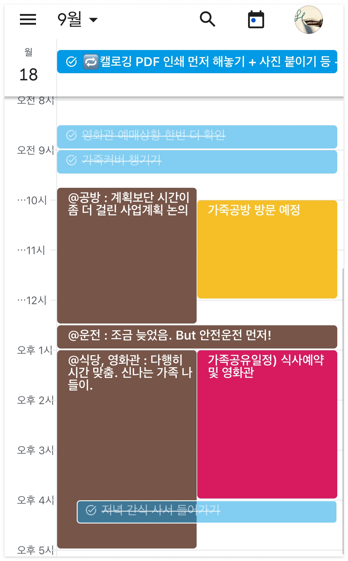 시간대별로 오늘 있었던 일을 간단히 요약해서 쓰고 그 중 의미있는 일, 중요한 일에만 메모를 더하는 방식으로 일기를 쓴다. 예전에는 중요하다고 강렬하게 느끼는 사건만 일기장에 기록했던 것과는 대조적이다.
