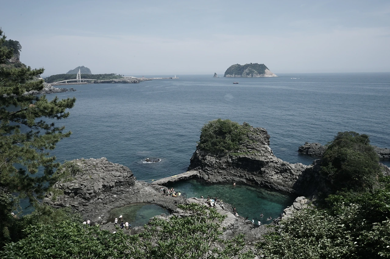 바닷가 절벽 아래로 자연이 만든 천연 풀장, 제주 올레길 7코스 구간에 위치한 황우지 해안은 현무암 용출로 인해 둘러진 사방으로 바닷물이 드나들며 만들어진 곳으로 선녀탕이라 불린다. 과거에는 무장공비가 침투해 전투를 벌였던 곳이기도 하다.