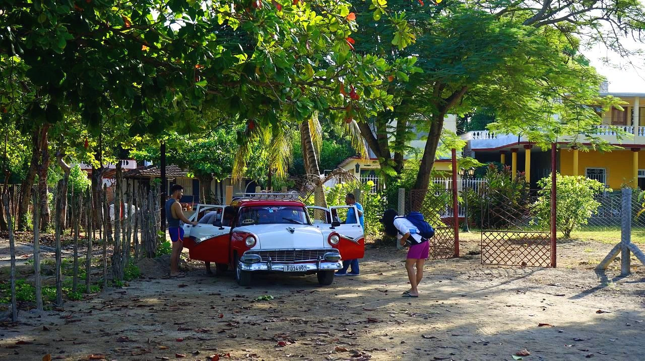 비냘레스 국립공원 여행을 마친 다음날, 영화 <모터사이클 다이어리>처럼 오토바이를 빌려 마을에서 55km 떨어진 까요 후티아스(Playa Cayo Jutias) 해변을 가려고 이른 새벽부터 설레는 마음으로 인포투르(infortur) 앞에서 기다렸지만 기약 없는 반납 일정 때문에 결국 택시를 타고 이동했다. (비냘레스 광장 <-> 까요 후티아스 왕복 택시비 인당 12 CUC : 해변에서 5~6시간 자유시간)