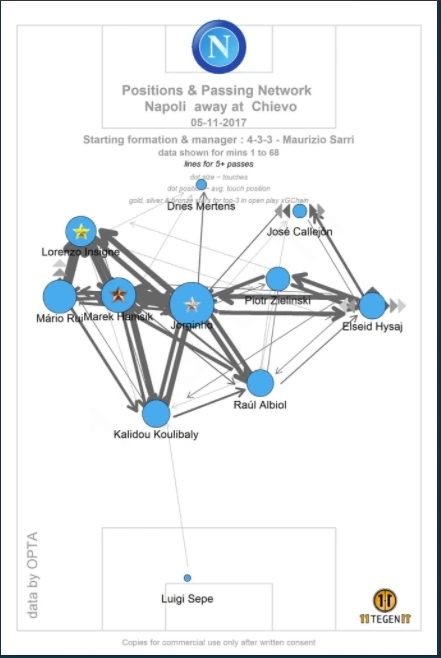 (나폴리의 패스맵. 패스의 대부분이 왼쪽에 치우쳐 있는 것을 볼 수 있습니다.)