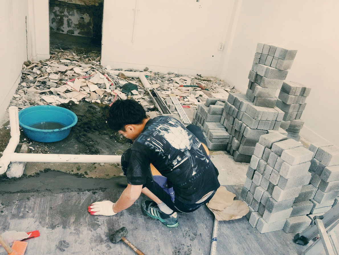 신랑의 퇴사를 앞둔 2주간은 혼자 아이를 안고 버스를 타고 다니며 오픈준비에 열과 성을 다했다. 인테리어를 업체에 맡길 수 없는 형편이라 철거작업부터 시멘트로 주방벽 만들기 주방공사 모두 셀프작업이었다. 당시 소방 관련 업무로 건축현장에서 일하던 신랑은 새벽 5시에 기상했고 식사시간을 아끼기 위해 내가 만들어준 삼각김밥을 들고 집을 나섰다. 퇴근 후 귀가하면 오후 7시였고 밤 12시가 넘도록 공사를 해야 했다. 퇴사를 하지 않은 상황에서 셀프인테리어로 3주 만에 개업을 한다는 것은 다시 생각해도 현실적으로 불가능한 일에 가깝다. 옷가게를 운영하던 매장을 주방으로 만드는 일은 신랑에게도 대단히 낯설고 어려운 일이다. 힘든 현장일을 마치고 매장공사를 하고 쓰러지듯 잠에 들던 신랑이 그저 안쓰러웠다.