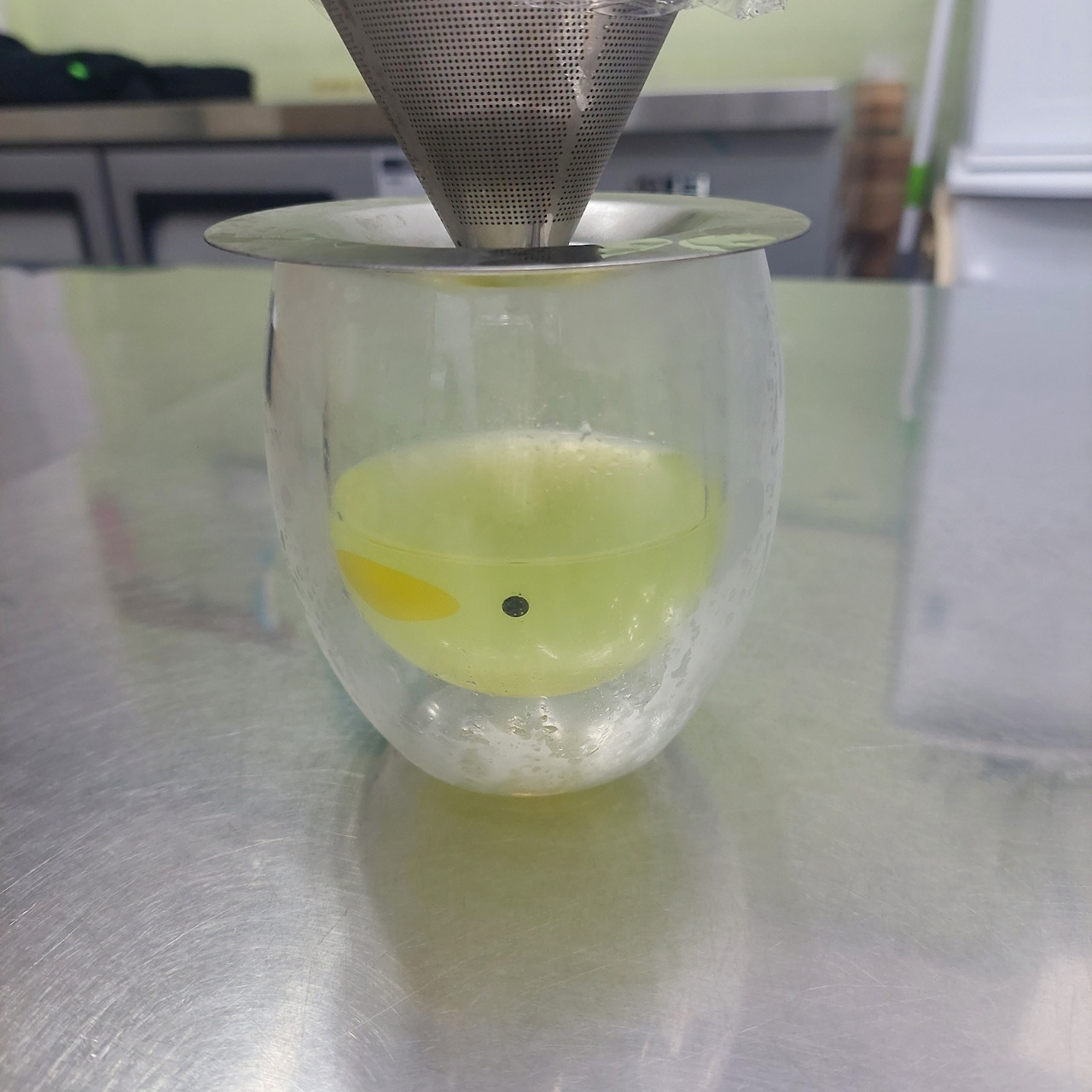 핸드드립 커피를 만들 때 사용하는 스텐필터에 실험 삼아 내려보았는데 적은 양 밖에 넣을 수 없어 실패한 방법이다.