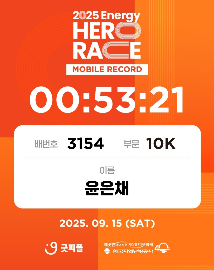9월 15일에 참가한 대회에서는 53분 21초로 결승선을 통과했다.