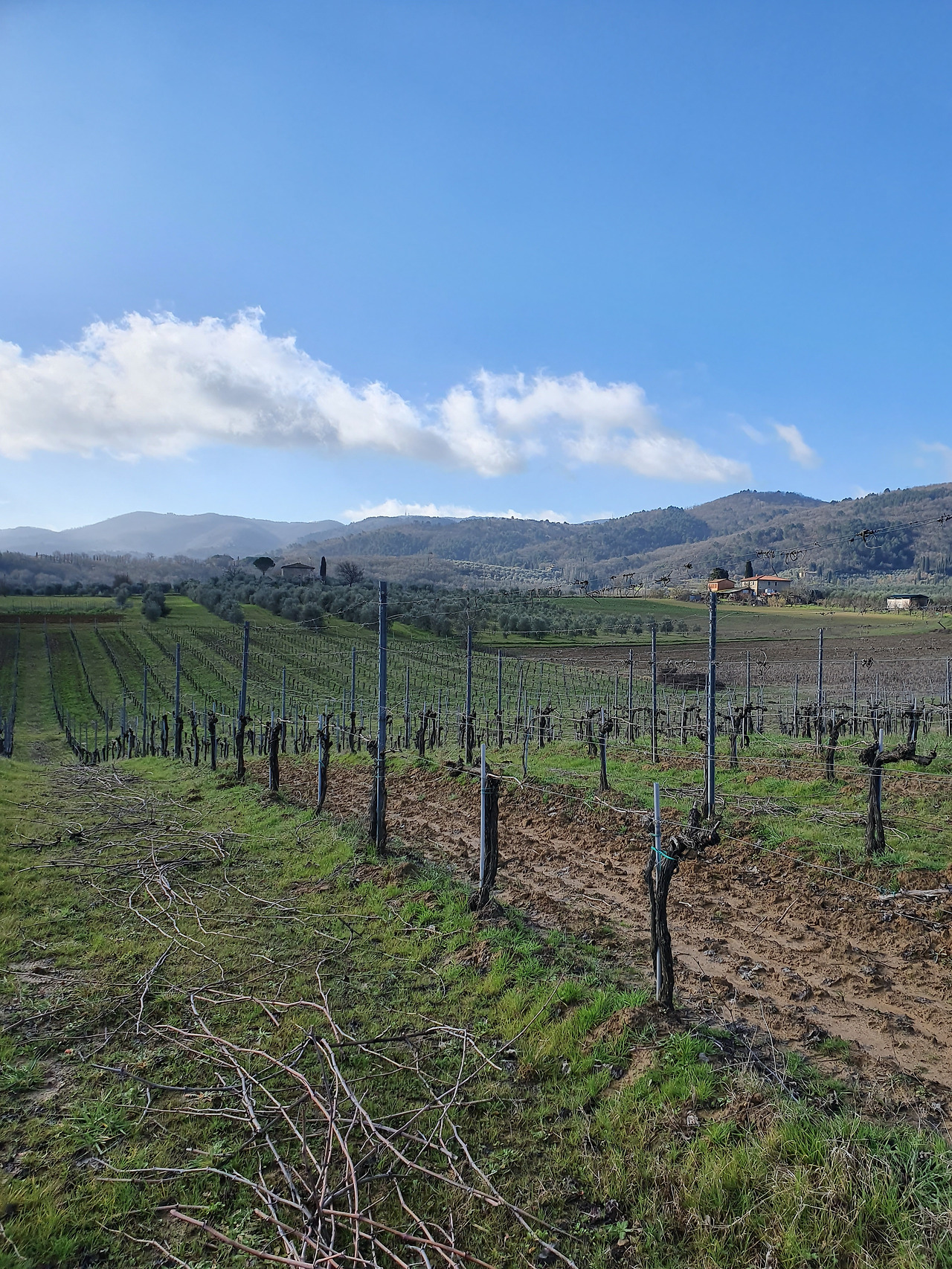 몇천 평은 될 법한 밭 초입에는 포도가 아니라 올리브나무들이 있었다. 올리브 나무들을 지나고 마시모가 양파와 토마토, 당근 등 식재료를 기르는 작은 식용 밭도 지나 탁 트인 공간으로 나가면 철사와 포도나무가 끝없이 보이는 밭이 나온다.