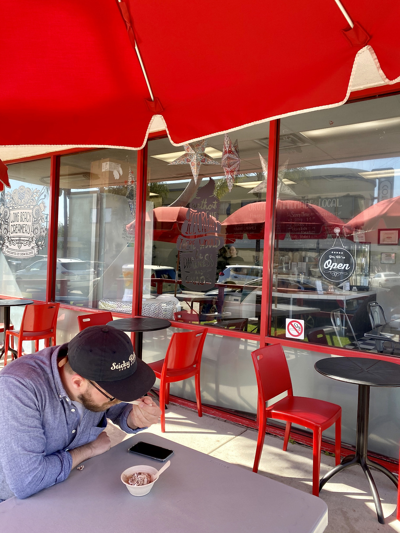 스티키리키 미국인 단골손님 커플이 서부 로드트립을 간다고 하니 Long Beach Cremary를 추천해주었어서, L.A로 들어가는 길 잠시 들러 리서치 겸 아이스크림을 먹었다.