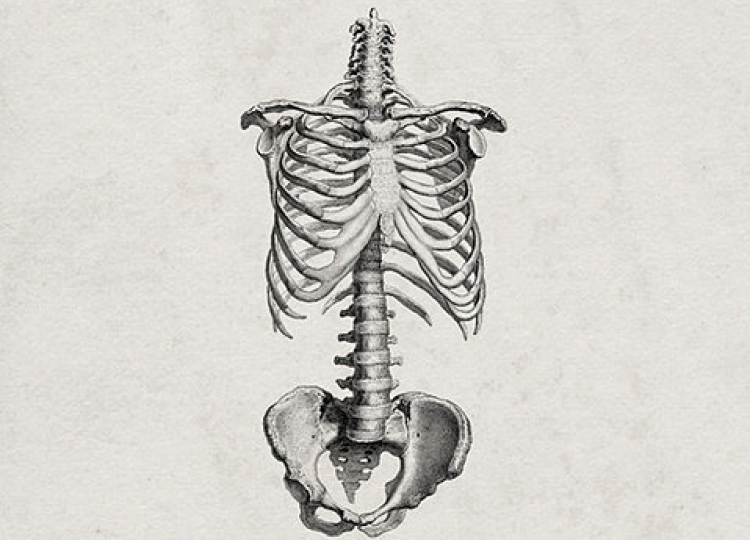 몸통은 의외로 네모가 아닌 계란형 셰입으로 이루어져 있다. 쇄골뼈 바로 아래 갈비뼈가 시작하는 부분 부터해서 갈비뼈와 척추를 따라 내려와 골반 아래 두 개의 좌골이 끝나는 지점까지.