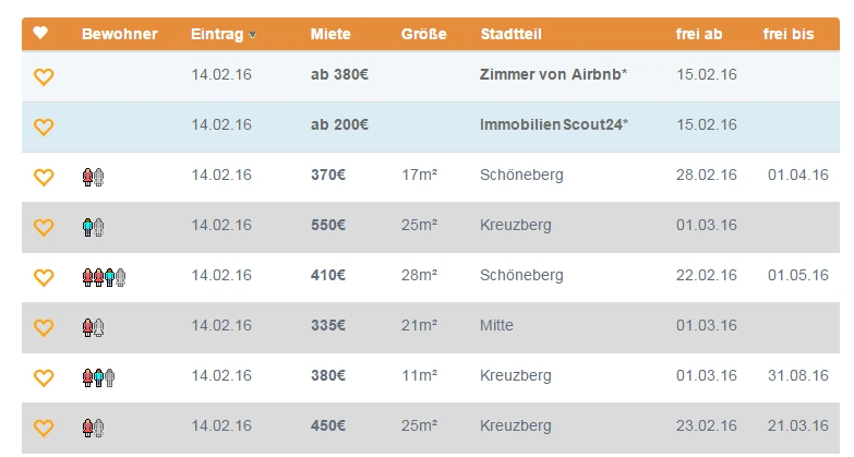나에게 조건이 맞는 약 20개의 WG에 메일을 썼지만 그중에서 답변이 돌아오는 곳은 3군데 그마저도 인터뷰를 보고 실패한 곳도 있었고, 살기에 내가 만족스럽지 않은 곳도 있어 점점 초조하고 서러워져만 갔다. 이러다간 이사를 원하는 날짜 전까지 WG를 찾을 수 없을 것 같아 용기를 내어 WG gesucht 페이스북에 WG를 찾는다는 광고를 만들었다. 광고에는 대략 '새로운 문화를 접해보고 싶은 쿨한 베를리너 WG가 있으면 연락을 달라. 나는 맥주를 좋아하고 요리를 좋아해 함께 한국요리를 해 먹을 수 있다.'라고 써두었다. 마침내 한 군데서 연락이 왔고, 인터뷰 날짜를 잡았다.