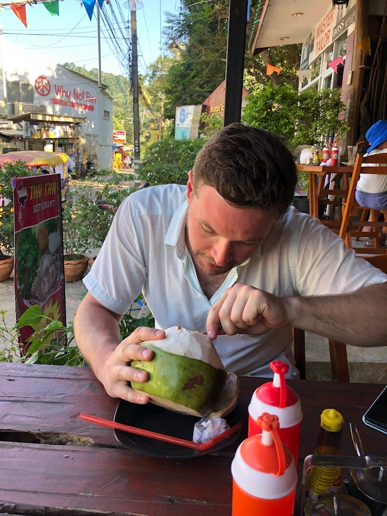 코란타는 관광객들이 꽤 있고 개발이 조금 된 편이라 그런지 카페나 레스토랑 등이 꽤 있었다. 물론 이름난 다른 유명섬에 비할정도는 아니지만. 스쿠터를 달리다가 코코넛도 한통씩 사먹고, 바다가 보이는 오두막 카페에서 쥬스도 한잔씩 사먹었다.