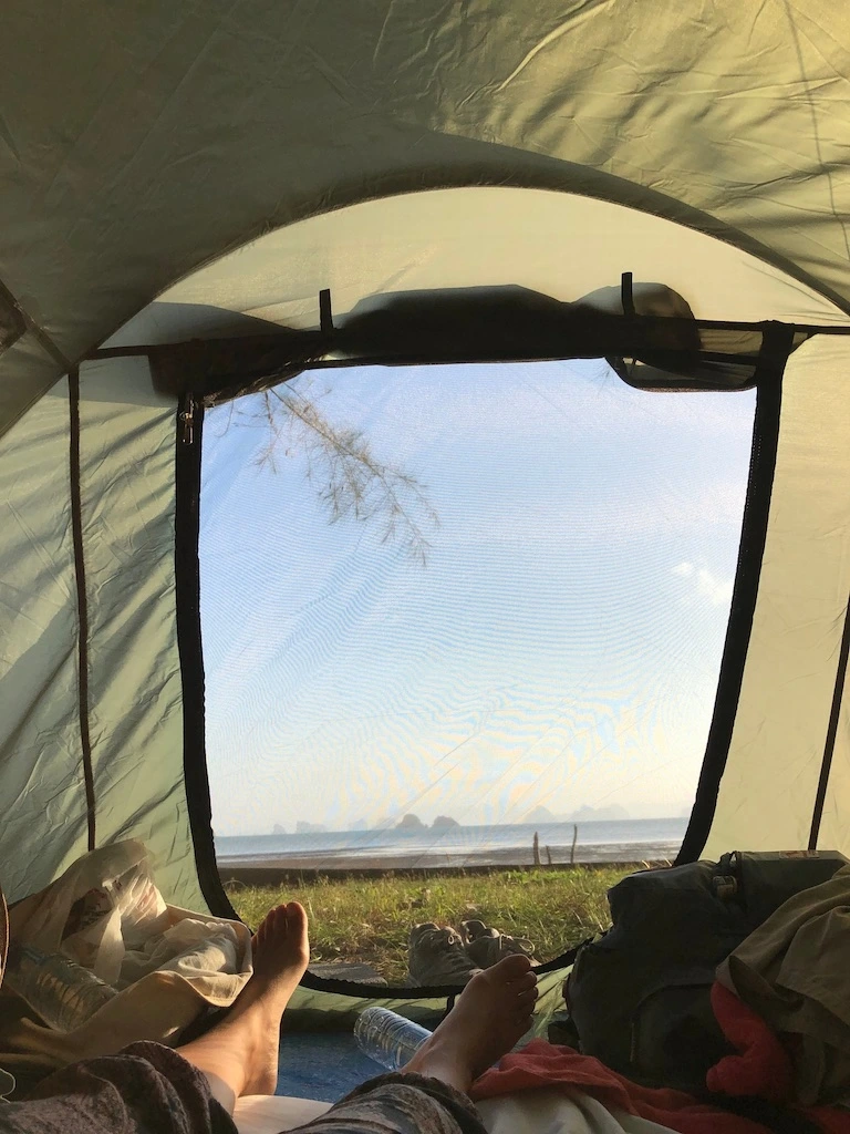 남편과 나는 Happy Accident가 생겨 텐트에서 캠핑을 하게되는 행운이 생겼다며 너무나도 즐거웠다. 바닷가 바로앞 텐트에서 숙박을 하게 된날, 텐트안에 깨끗한 침구도 준비해주셔서 생각보다 너무 편안하게 잠들 수 있었다. 낯선 섬에서 첫날밤부터 캠핑이라니, 너무나 낭만적이었다.