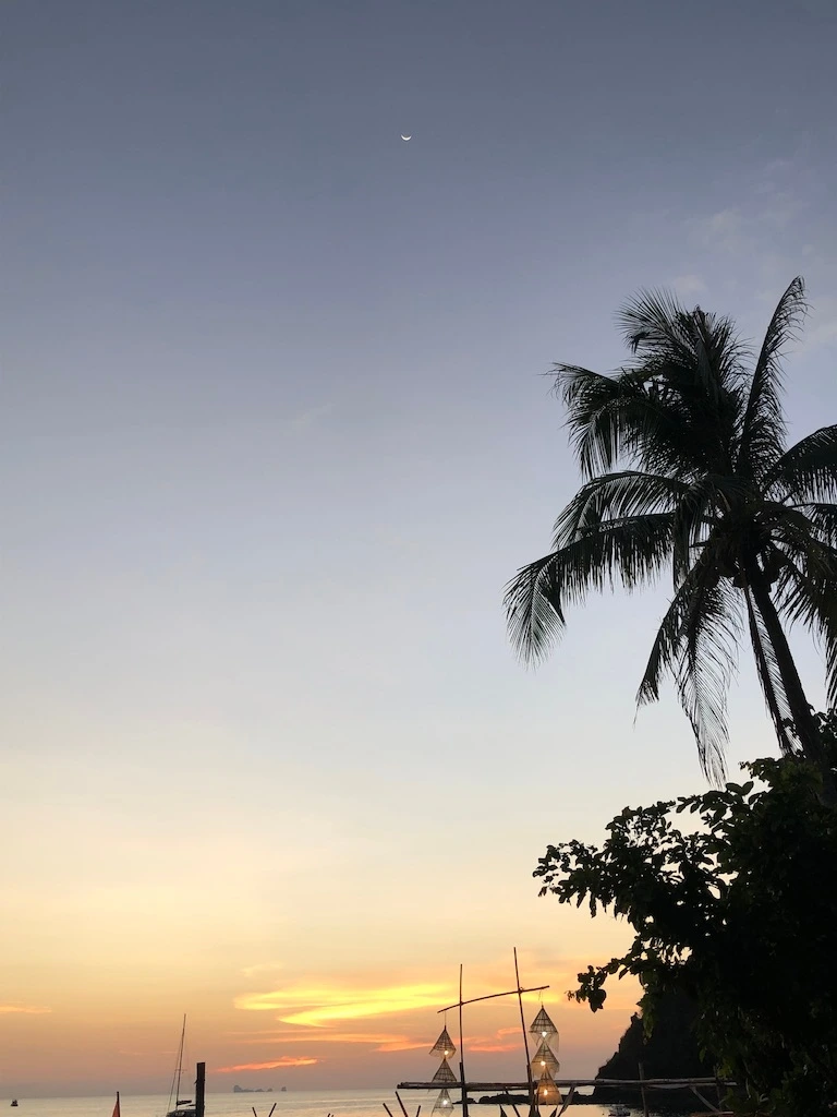 코란타에서의 첫번째 밤은 란타 섬 아주 남쪽에 위치한 Klong Jark에서 보냈다. 도착하자마자 석양을 배경으로 수영을 하고 저녁을 먹으니 어느새 어둠이 내려앉았다.