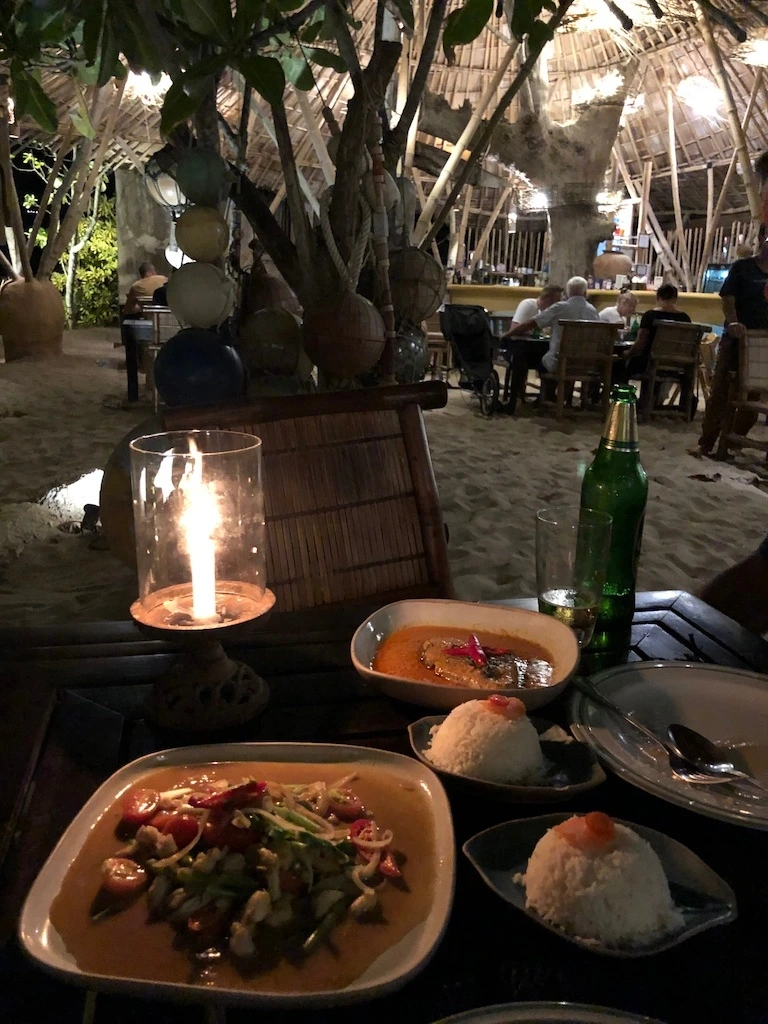 코란타에서의 둘째날은 얼마전 이곳에 다녀온 친구 커플에게 소개를 받은 'Same Same But Different'라는 해변가 야외 레스토랑에서 로맨틱한 저녁을 보냈다. 모래사장 위에 놓인 테이블에서 시원한 창 맥주 한잔에 커리와 쏨땀을 먹었다. 밥을 먹으면서 발에 느껴지는 부드러운 모래 감촉이 계속 느껴져 기분이 더 좋았다.