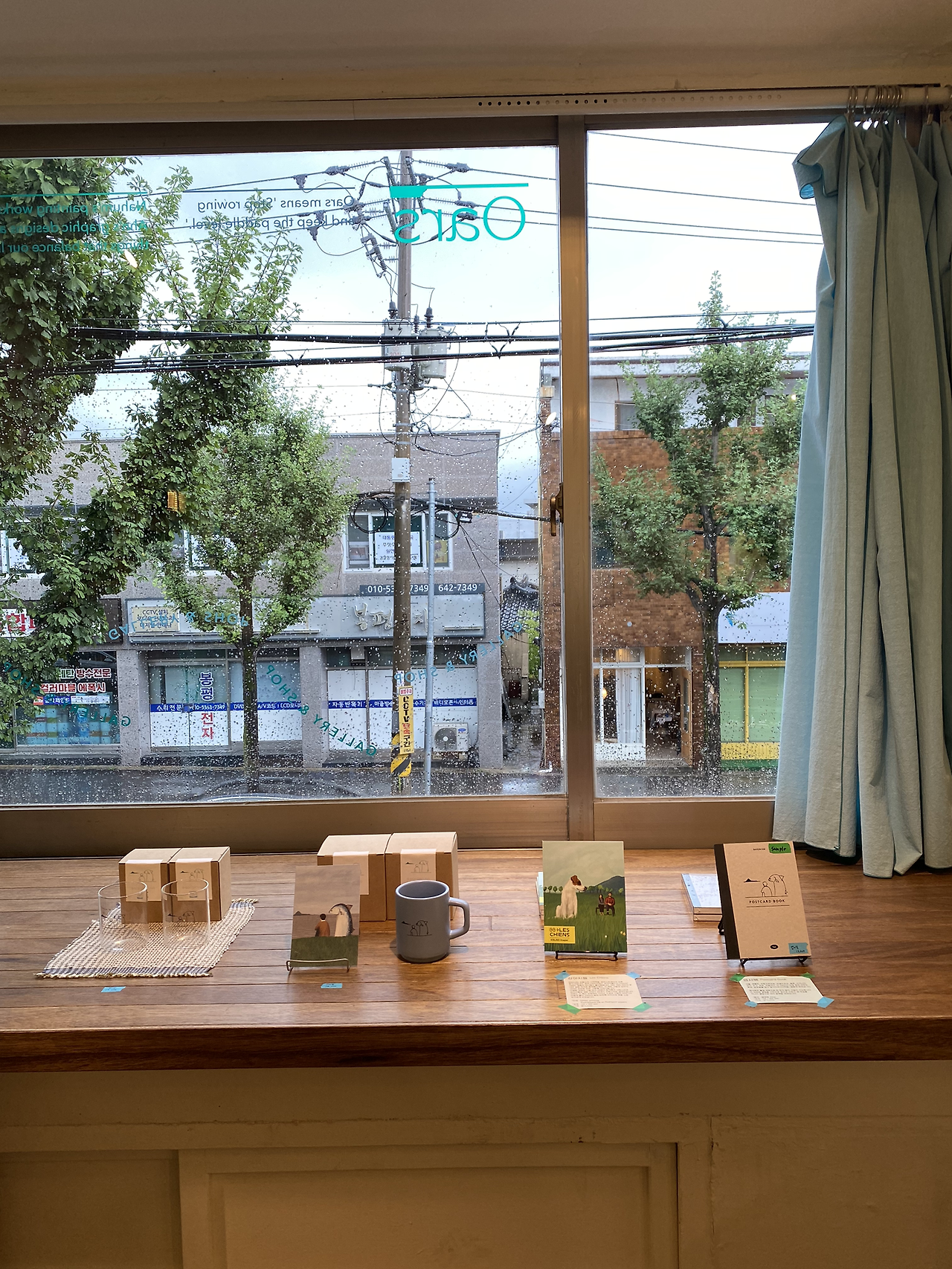 그리고 서울로 돌아오기 전, 스티키 리키에 자주 오셨던 성경님이 강릉으로 이사 가셔서 오픈한 디자인샵인 ‘오어즈’에 들렀다. 맘에 드는 화병과 엽서를 사고 강릉살이에 대한 이야기를 한참 나누었다. 성경님의 따뜻한 이야기들이 마음에 남아 서울로 돌아오는 길에 오어즈가 무슨 뜻인가 싶어 찾아보니 ‘노 젓는 사람에게 젓는 것을 멈추고 노를 수평으로 유지하라는 구령’이라고 했다. 그제야 로고에 그려진 바다와 노가 보였다.