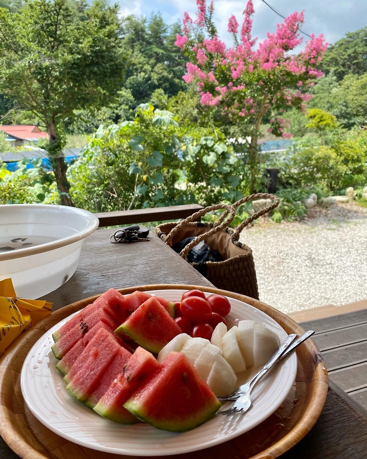 선생님을 제외한 요가 하우스 정원은 총 4명으로 1분은 이미 도착해 있었고, 나와 친구가 도착하자 요가 선생님 어머니는 직접 기른 과일들을 한 쟁반 내어주셨다.