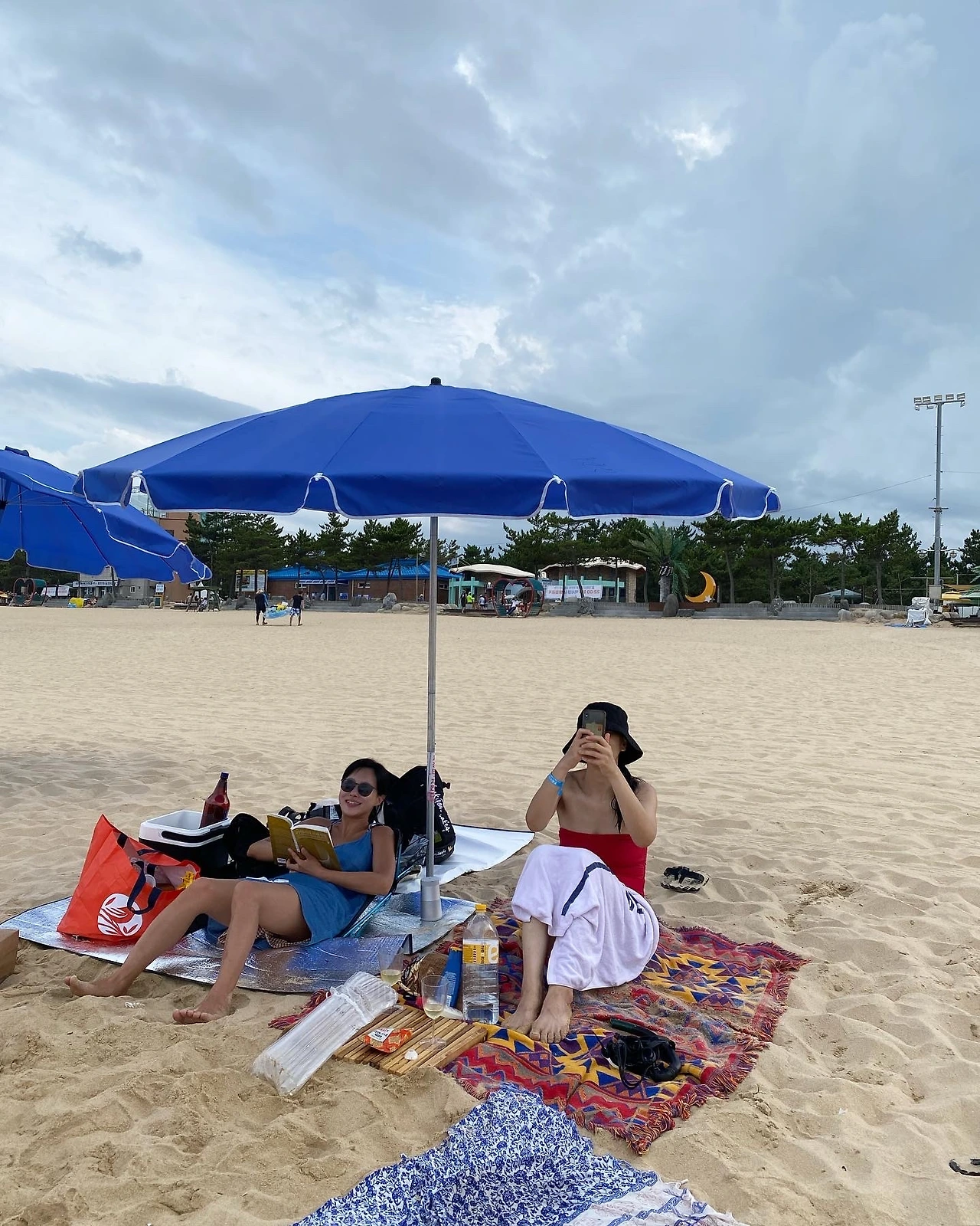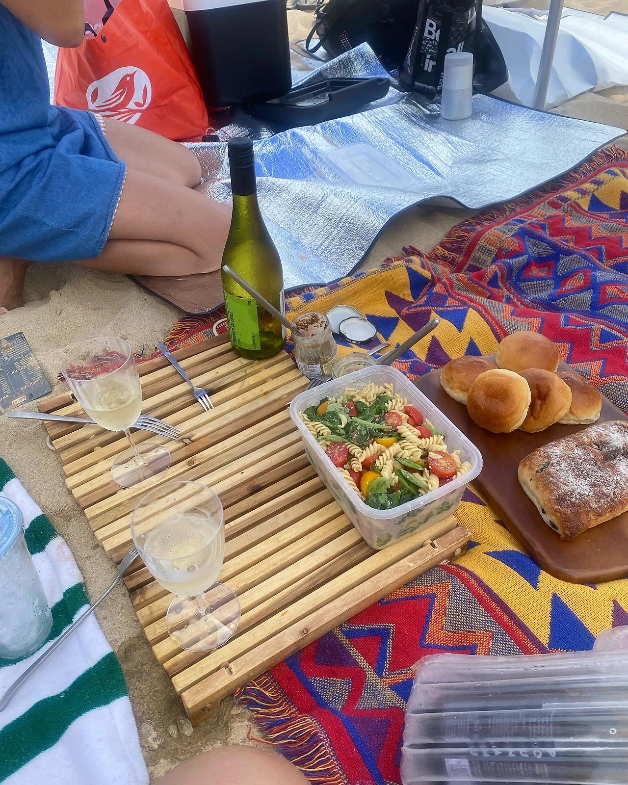 오후 늦게부터는 비 예보가 있어서, 해가 떠있을 때 바다를 즐기고자 서둘러 주문진 해수욕장을 향했다. 파라솔 아래 자리를 펼치고 시원한 와인에 파스타로 비치 피크닉을 즐기고 바다수영을 하고 모래사장에 앉아 태닝도 즐기고, 5시간 정도 바다에서 원 없이 놀고 나니 손이 쪼글쪼글해졌다. 시시각각 변하는 하늘과 바다를 멍하니 바라보고, 오락가락하는 날씨 덕에 바다 위에 큰 무지개가 떠 한참을 바라보고 자연이 주는 감흥에 젖어 시간 가는 줄 몰라 가져온 책은 딱 한 줄밖에 읽지 않았다.