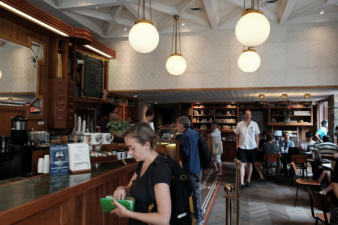 한국에서도 잘 알려져 있는 스텀프 타운. 포틀랜드에서 시작한 스텀프 타운은 포틀랜드뿐만 아니라 시애틀, 뉴욕, LA 등 에도 매장이 있다. 그중 뉴욕에서는 2군데의 매장이 있는데 하나는 워싱턴 스퀘어 파크 근처 그리고 다른 하나는 특이하게 ACE호텔 로비에 위치해있다.