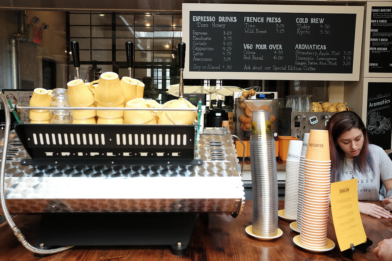 브룩클린 윌리엄스버그에 위치한 데보씨옹 카페. 콜롬비아 커피만을 판매하는 데보씨옹은 세계에서 유일한 'FARM-TO-TABLE' 커피라는 슬로건을 내걸고, 콜롬비아에서 수확한 빈을 항공배송으로 열흘 안에 받아 로스팅하여 신선함을 최상으로 유지한다고 한다.