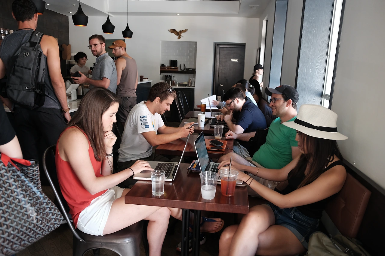ACE호텔에도 들렀으나 너무 복잡하여 워싱턴 스퀘어 파크 근처 스텀프 타운으로 자릴 옮겼다. 뉴욕의 중심가에 위치한 곳이라 그런지 사람들도 무척 많았으며 대부분 느긋하고 여유로운 모습 같아 보이진 않았다. 뉴욕대학교 바로 근처에 위치한 카페라 그런지 공부를 하고 있는 학생들의 모습도 많이 눈에 띄었다.