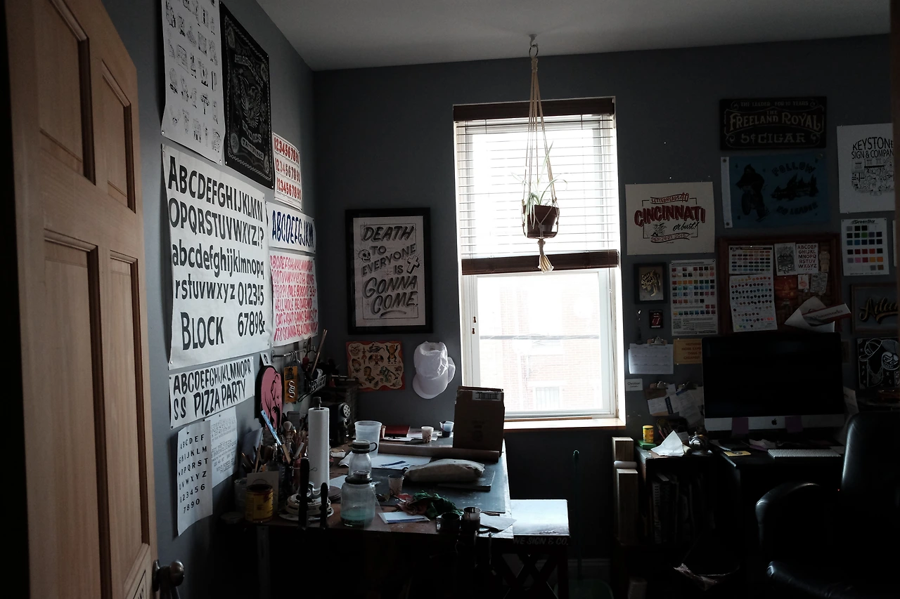 크리스찬과 아일린의 집에서 가장 재밌는 공간은 크리스찬의 작업실과 뒤뜰 그리고 곳곳에 놓인 식물들이었다. Keystone sign & design이라는 회사를 운영 중인 부부는 별도의 사무실 대신 집 2층에 작업실을 마련해 놓고 도안 작업 등을 한다고 했다. 1층은 거실과 부엌, 3층은 베드룸으로 사용하고 2층 전체는 철저히 작업 공간으로 분리시켜 개인 시간과 일하는 시간을 공간에서도 분리를 두어 효율성을 높인다고 했다.