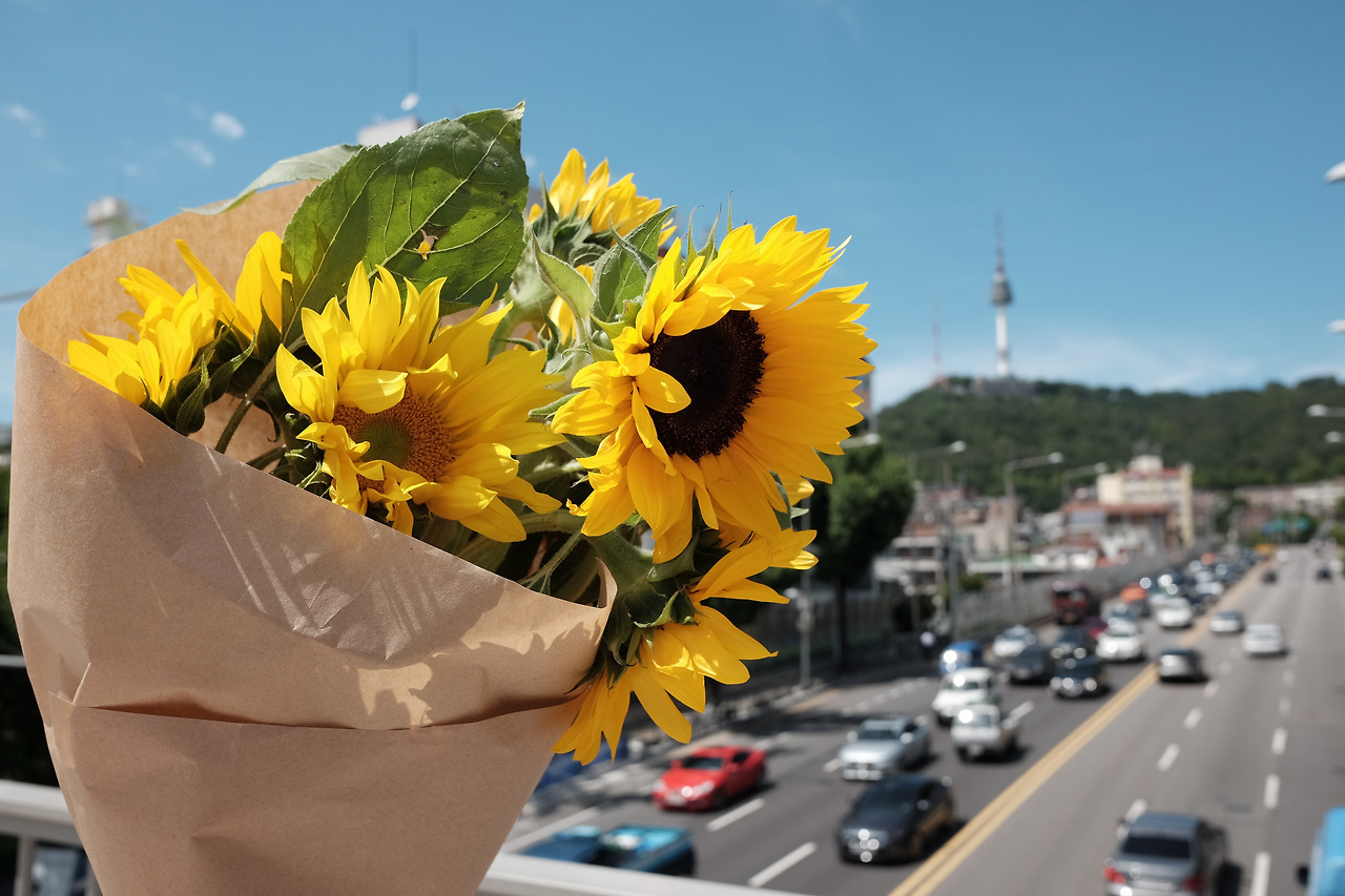 특히나 해바라기를 한아름 골라 든 날엔 옆에서 같이 꽃을 고르던 흑인 아주머니도 날 따라 해바라기 한다발을 고르셨는데 꽃집을 나와서도 해바라기 한아름을 들고 서로 몇번이나 눈인사를 했는지 모른다.