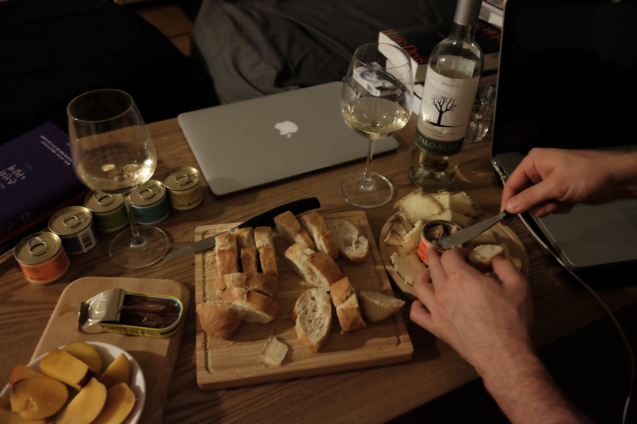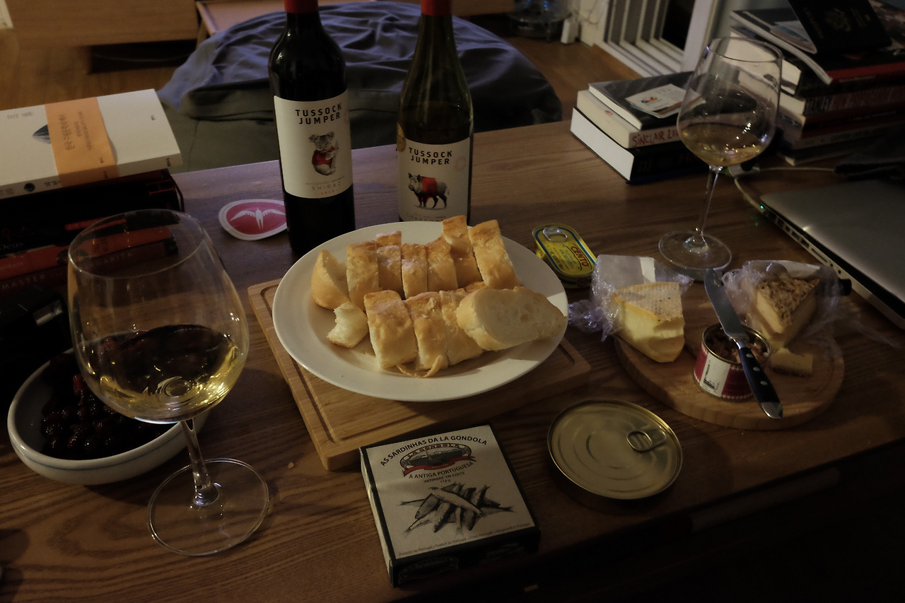 친구들이 사다준 사르딘과 파테, 치즈와 함께 집에서 와인을 마시며 음식으로 세계여행을 해본 날도 있었고,