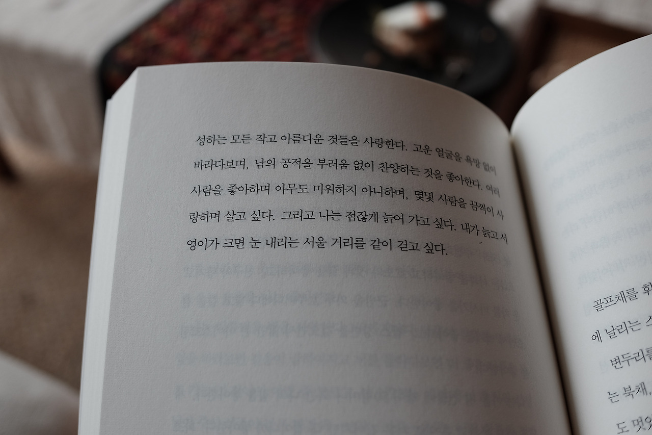여행동안 유난히 좋았던 두가지 순간이 있다면, 비내리는 아침 숲이 보이는 큰 창문이 있는 카페에서 조용히 커피를 마시며 피천득을 읽은 일, 조용히 눈을 감고 피아노 음악을 감상하던 카페 주인 부부의 온화한 얼굴.