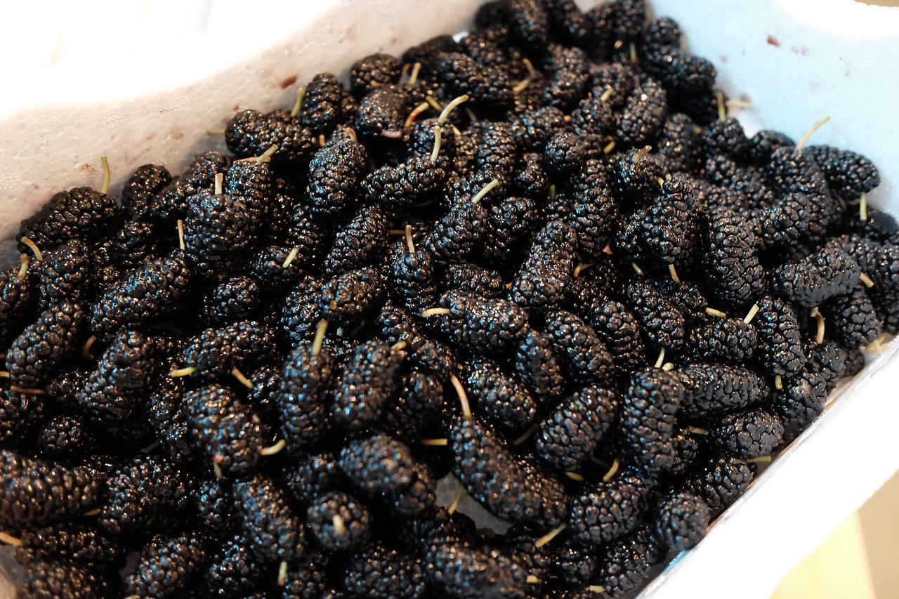 오디를 손질하며 손이 까맣게 오디물이 들었고,
