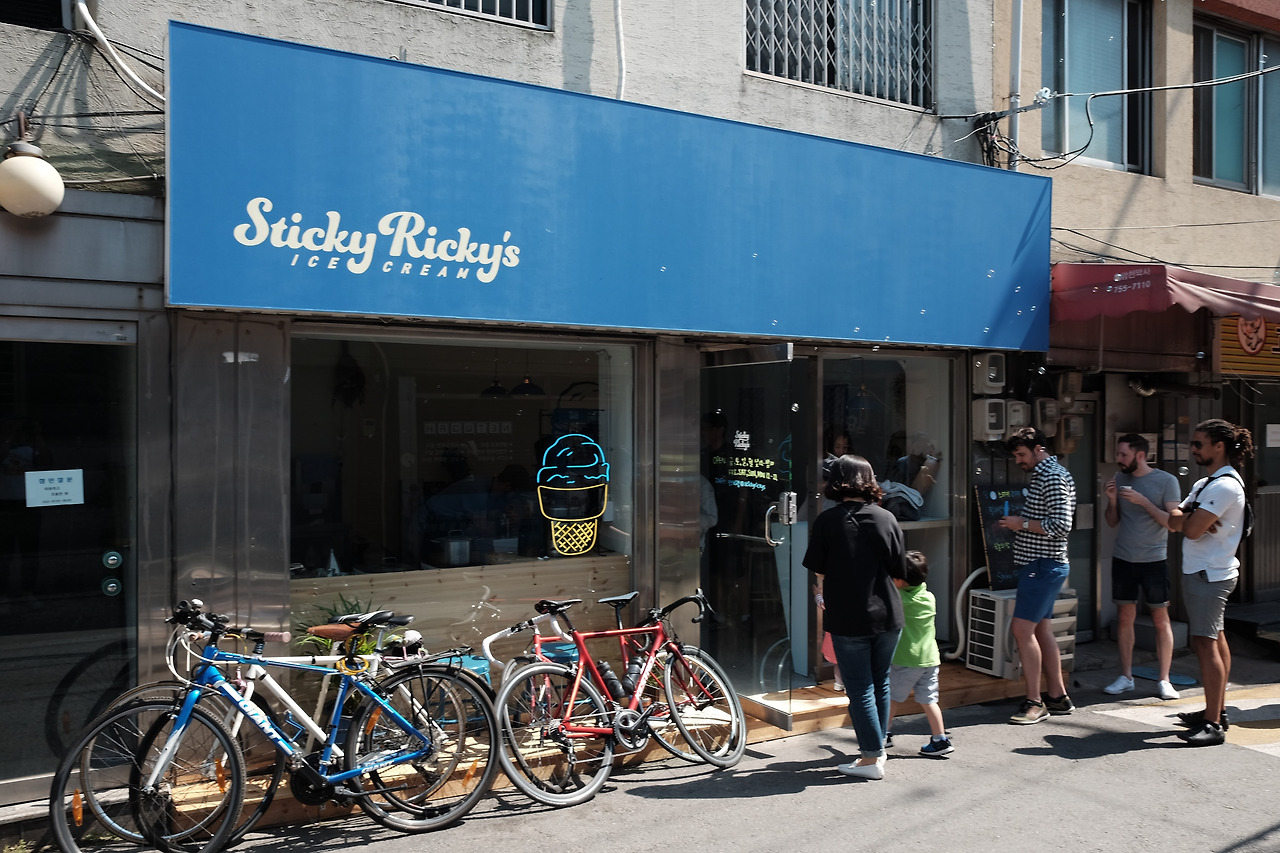 가게 자리를 계약하고 2017년 3월 중순쯤 새로운 브랜드 로고 및 CI와 핸드페인팅 사인 등을 위해 디자이너 친구인 케빈과 작업을 시작하게 됐다. 이미 '스티키리키'라는 이름으로 팝업을 계속 해왔기도 하고, 짝과 내가 원하는 '남녀노소 누구나, 재밌게 즐길 수 있는, 친구 같은 아이스크림'에 딱 맞는 이름이라 스티키리키라는 이름은 유지하되 새로운 브랜드 로고 등을 만들기로 했다.