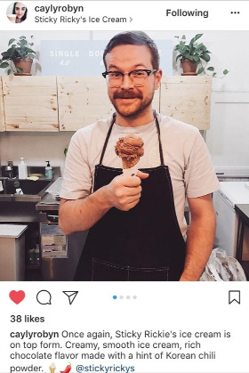 스티키리키의 가장 유명한 시그니처 메뉴이자 인기가 많은 메뉴는 바로 '고추장 초콜렛'이다. 아이스크림가게에서 메뉴 중 고추장 초콜렛을 보면 외국인이든, 어린아이 든, 나이 드신 어르신이든 "고추장 초콜렛이요?" 라고 하며 눈이 똥그래진다.