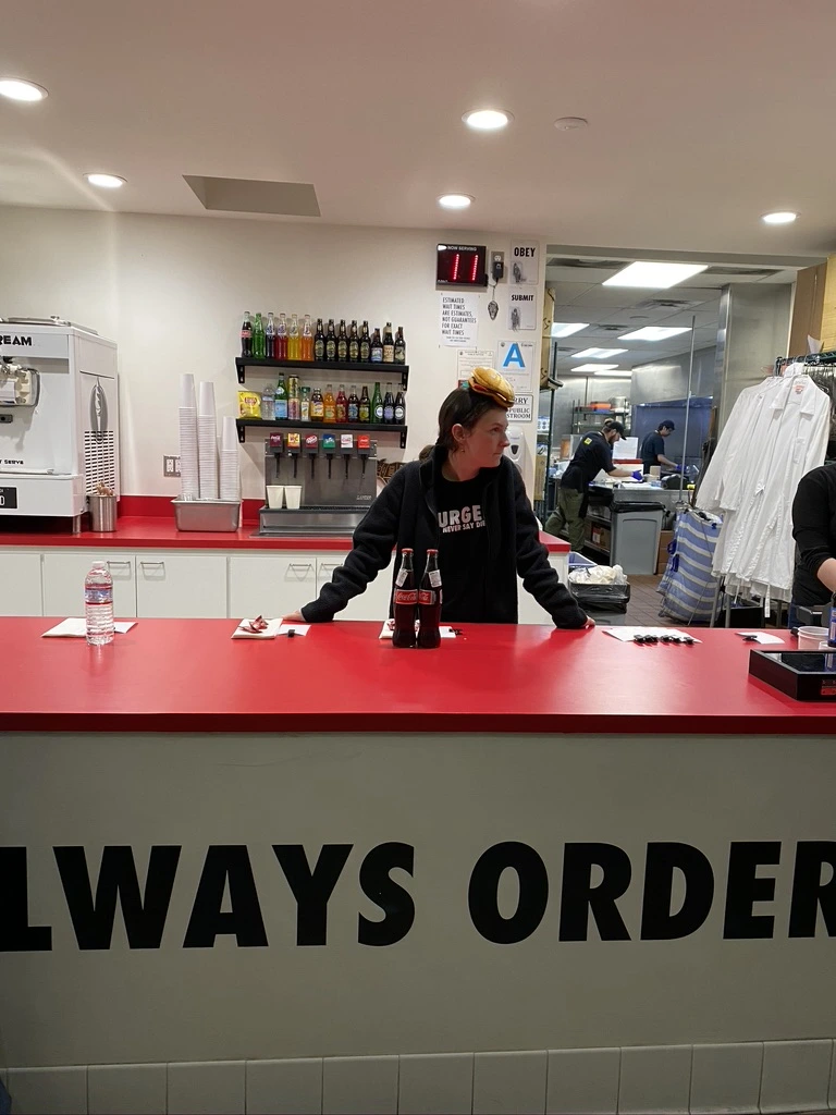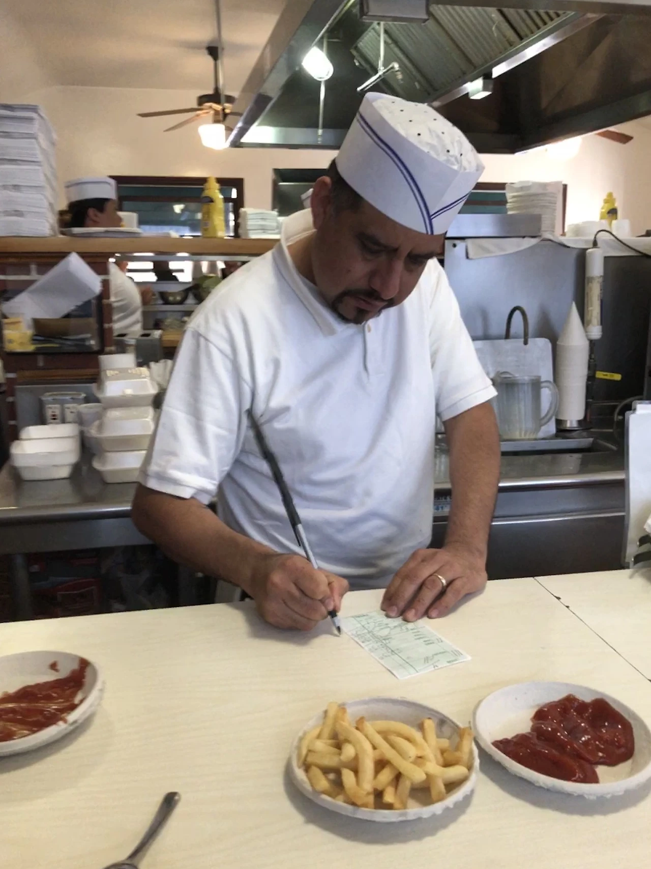 넷째 날은 LA 외곽에 있는 게티센터와 베니스 비치 쪽을 둘러보기로 했다. 게티센터로 가는 길에 애플 팬 들르기로 했다. 애플 팬은 1927년부터 한 자리를 지키며 운영되고 있는 햄버거와 애플파이로 유명한 곳이다. 1947년부터 지금까지 같은 주인분이 운영을 하고 있는 곳이다. 지난번 LA 여행 때 왔던 곳이었는데, 백 년 가까이 운영하며 모든 메뉴를 손으로 직접 쓰고, 올드스쿨 캐셔를 사용하는 것이 너무 인상적이었기에 짝꿍을 꼭 데려오고 싶었다. 스티키리키를 함께 운영하며 이렇게 오래 한자리를 지키며 가게를 운영한다는 것이 얼마나 어려운 일인지 잘 알고 있기에