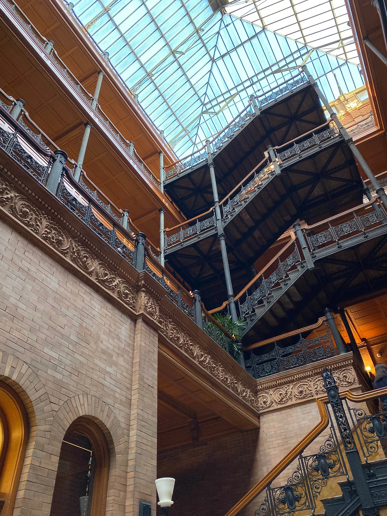 아직 결혼한 지 4년이 됐지만 아직 결혼식을 하지 않아서, 빈티지샵에서 괜찮은 웨딩드레스를 찾고 싶어 피크닉을 마치고 할리우드에 있는 몇몇 빈티지샵에 들러 웨딩드레스를 열심히 찾아보았다. 딱히 맘에 드는 것들이 없어 아쉬운 마음을 달랜 채 남편이 젤 좋아하는 영화관도 들르고, 다운타운 쪽으로 가서 <블레이드 러너>, <500일의 서머> 등 유명한 영화들의 배경이 된 브래드버리 빌딩과 '더 라스트 북스토어'도 들러 책과 레코드를 구경했다.