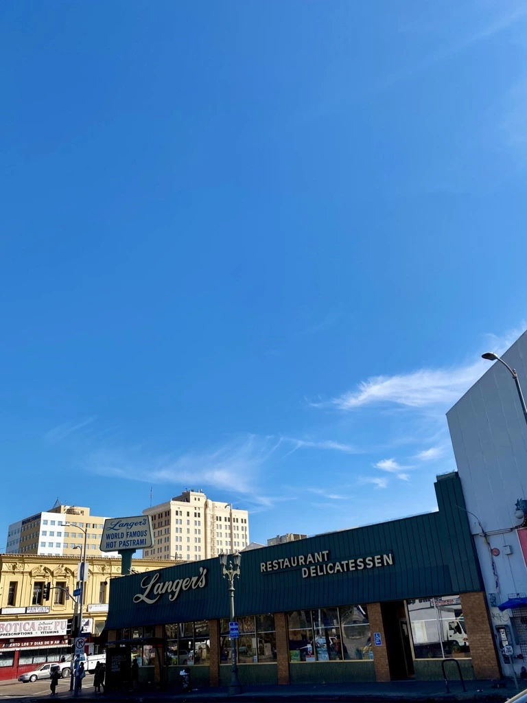 쥬이시 델리 랭거스에서 파스트라미 샌드위치를 테이크 아웃하기로 해서 피크닉을 즐기기로 했다. 1947년에 오픈한 랭거스는 LA 현지인들에게 정말 유명한 맛집 중 하나인 곳인데, 전통을 유지하면서도 여전히 큰 사랑을 받고 있는 곳이다.