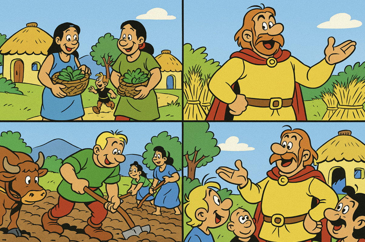 농경사회에서 인류는 한 곳에 정착하여 마을을 이루고 농사를 짓고 살아가게 되었다. 이에 따라 마을을 이끌고, 농사를 주도하는 촌장이 등장하게 된다. 촌장은 마을주민들을 위험으로부터 보호하고, 풍년이 들어 농산물을 많이 확보할 수 있도록 하는 역할을 수행하였다. 농경사회 리더인 촌장의 능력은 ‘용맹’에 더하여 ‘지혜’를 갖추어야 하였다.