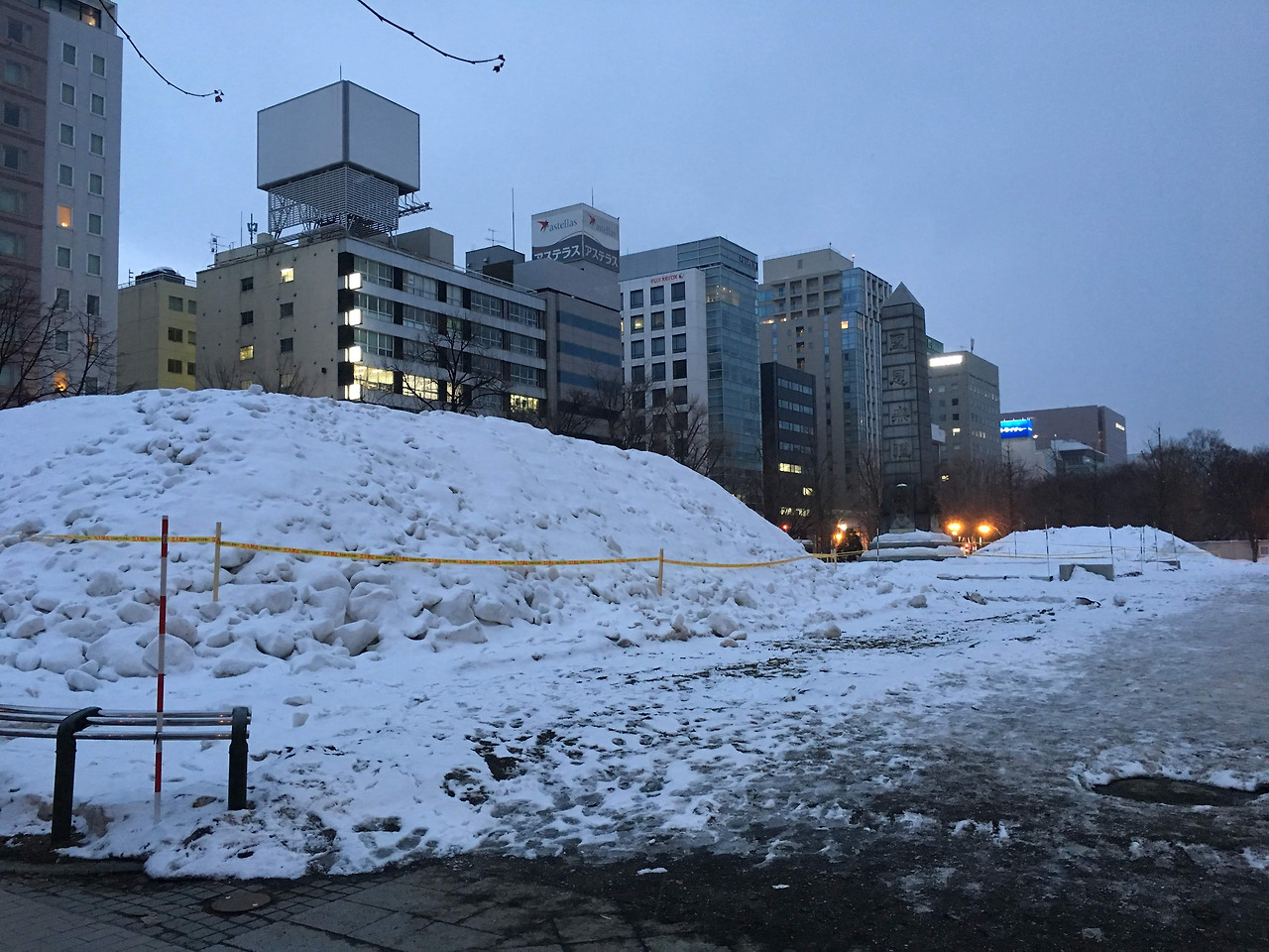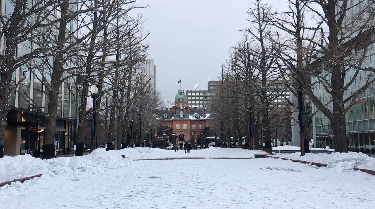 걷다 보니 아카렌가가 나왔다. 까마귀 울음 속 을씨년스러운 분위기 속에 눈이 후두둑 내렸다. 오오도리 공원은 눈 축제가 끝나고 치워둔 눈으로 전혀 예쁘지 않았지만, 쌓인 눈이 많아서 그것만으로도 즐거웠다.