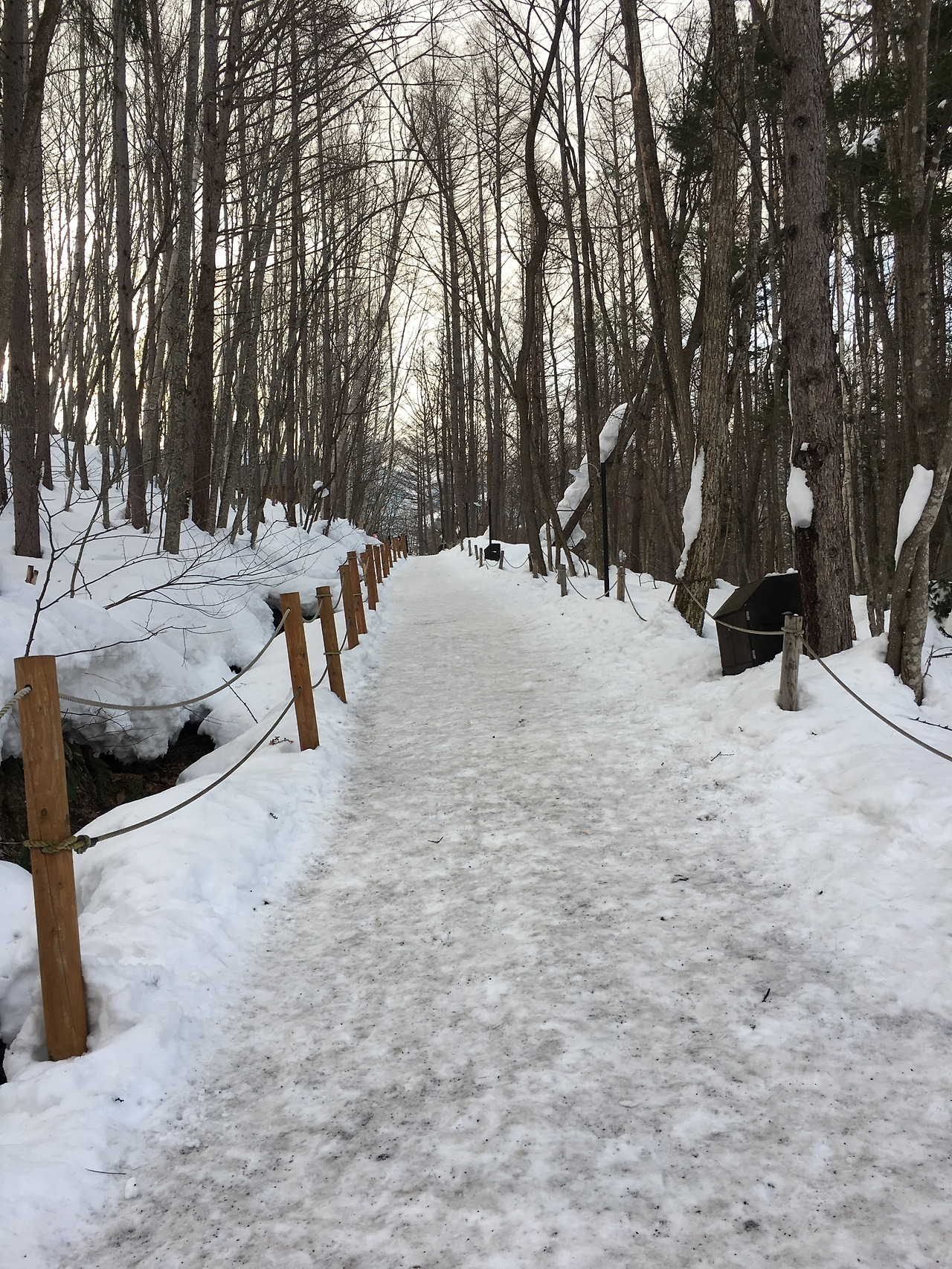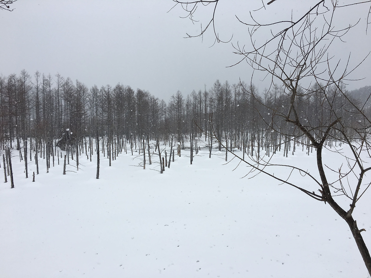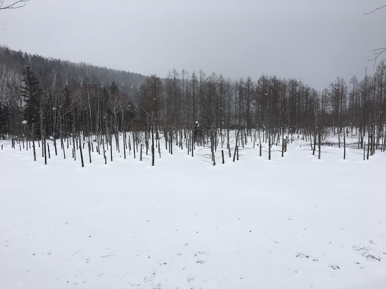 아오이케라는 곳에 갔다. 흰 눈밭에 앙상한 나무들이 꽂혀있었다.. 원래 연못이라고 한다. 여름 이미지 찾아보니까 엄청 예뻐… 여름에 꼭 와서 다시 봐야겠다고 생각했다. 맑은 날 와야 파랗게 보인다고 한다. 파란 연못은 없지만 구경하는 도중 눈이 내려서 영상은 예쁘게 찍혔다. 사진은 어떻게 찍어도 안 예뻤다.