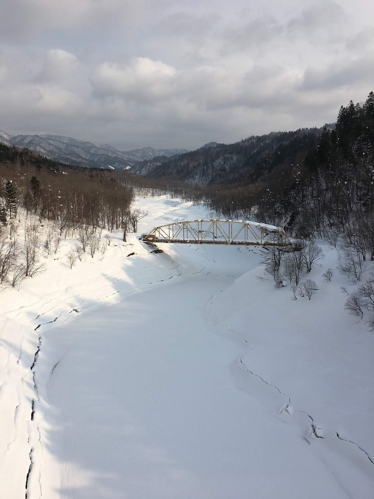 그렇게 멀리 가지 않아서 “자 내리세요!!” 해서 내려보니 엄청 예쁜 풍경이 눈에 들어왔는데, 그게 흰그림자 다리라고 했다. (네이버 북해도 카페 대표가 투어 스팟으로 개발한 곳이라 그분 닉네임을 붙인 것으로 알고 있다.) 너무 예뻤다. 쭈뼛쭈뼛하면서 혼자 온 분과 서로 사진 찍어줬다.