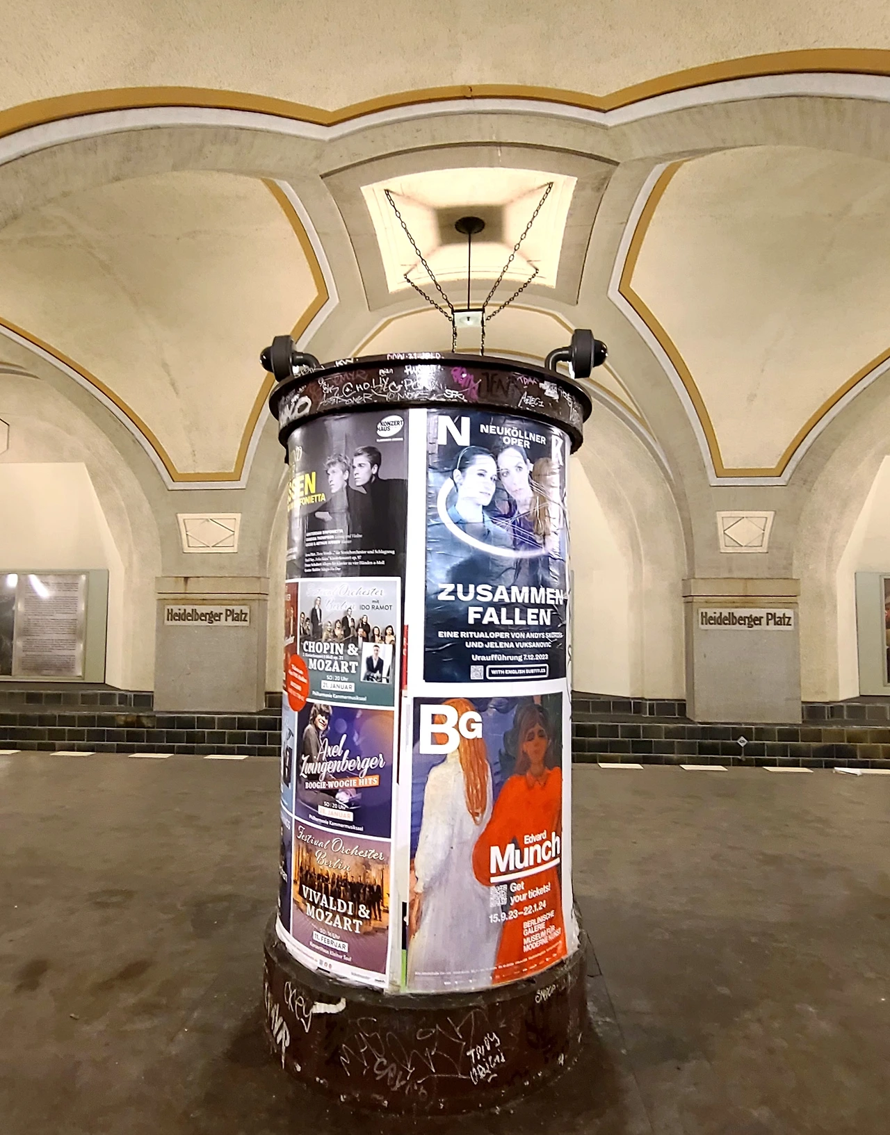 1990년부터 안쪽으로 열리는 기둥이 생겨나기 시작했다. 내부에는 단말기나 전화기가 설치되었다. 요즘에는 포스터에 유리창을 씌워 전기로 광고판이 자동 회전하는 형태로 진화해 사람들의 눈길을 더욱 사로 잡고 있다.