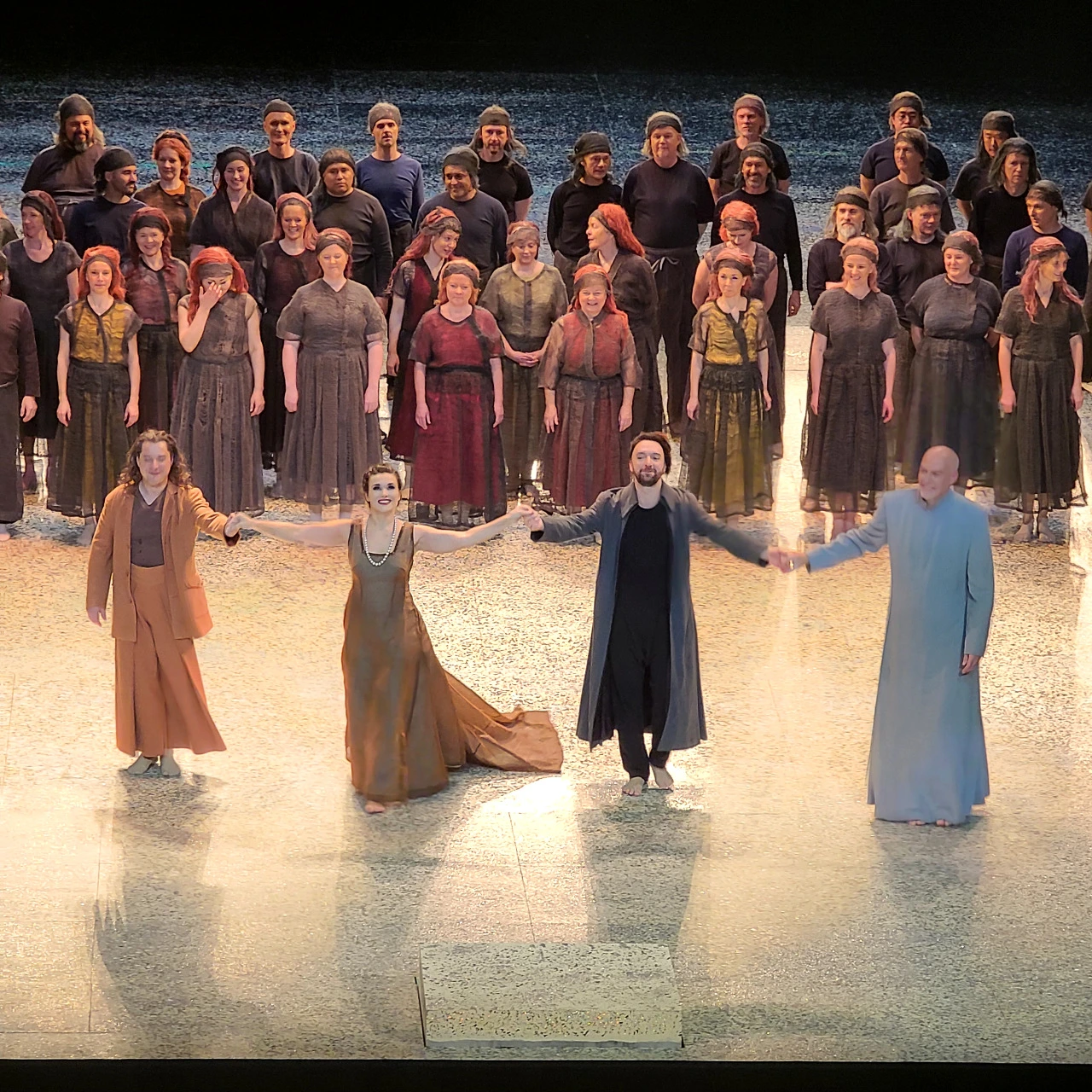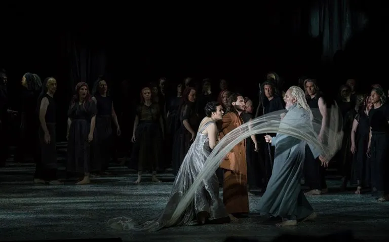이번 프로덕션은 2017년에 나온 작품으로 독일 전후 세대를 대표하는 신독일영화의 기수 빔벤더스(Wim Wenders) 감독이 연출을 맡아 주목을 받았다. 당시 지휘자 바렌보임의 제안으로 참여하게 되었는데, 프리미어 이후 오페라 감독으로서는 초보의 행보라며 언론에서는 좋지 않은 평가를 받았다. 개인적으론 스리랑카의 실론섬의 바다와 빛들을 배경으로 주인공들의 심리에 따라 무대 공간을 다양하게 분할하고 활용해서 마치 여러 개의 영화 씬을 보는 듯 다채로워 좋았다. 영화감독의 장점을 잘 살렸다 싶었다. 다만 초반에 합창 부분에서 눈이 부신 바닷가 햇볕 체험을 하라는 의도인지 뭔지 관객 쪽으로 조명을 과도하게 쏘아대서 너무 불편했다. 오페라 도중 출연 싱어 혹은 관련 영상을 편집해 프로젝트로 무대에 가득 투사하는 경우가 종종 있다. 세련되게 연관성이 있다면 때론 효과적이지만 과하면 스토리 전개나 극에 집중도를 떨어뜨리기도 한다. 여기선 후자였다.