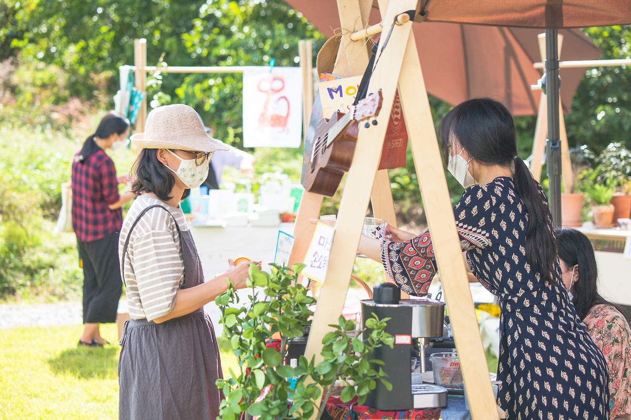그래서인 행사의 기획자인 우리 뿐아니라, 판매자와 구매자 등의 방문객 만족도가 높았다. (아, 코로나로 인한 장내 인원 제한의 여파로 몇몇의 아쉬운 피드백이 있긴했다.) 함께 장을 꾸려준 이들에 대한 든든함과 지역에서 새로운 자리를 마련했다는 보람이 컸지만, 둘이서 고민하고 실행하며 육체적, 마음적으로 힘들었다. 우리에겐 절충안과 대안이 필요했다. 힘을 빼고 할지, 구성원을 늘릴지. 우린 후자를 택했다. 모아는 환경을 고민하고, 취지에 공감하는 사람의 필요를 말했고, 나는 전체적인 운영계획을 세우고 꼼꼼하게 살필 수 있는 경험이 있는 기획자의 필요를 말했다. 감사하게도 우리 주변엔 그런 이들이 있었다. 그들은 누구이며, 다음 불모지장은 어떻게 꾸려질까?