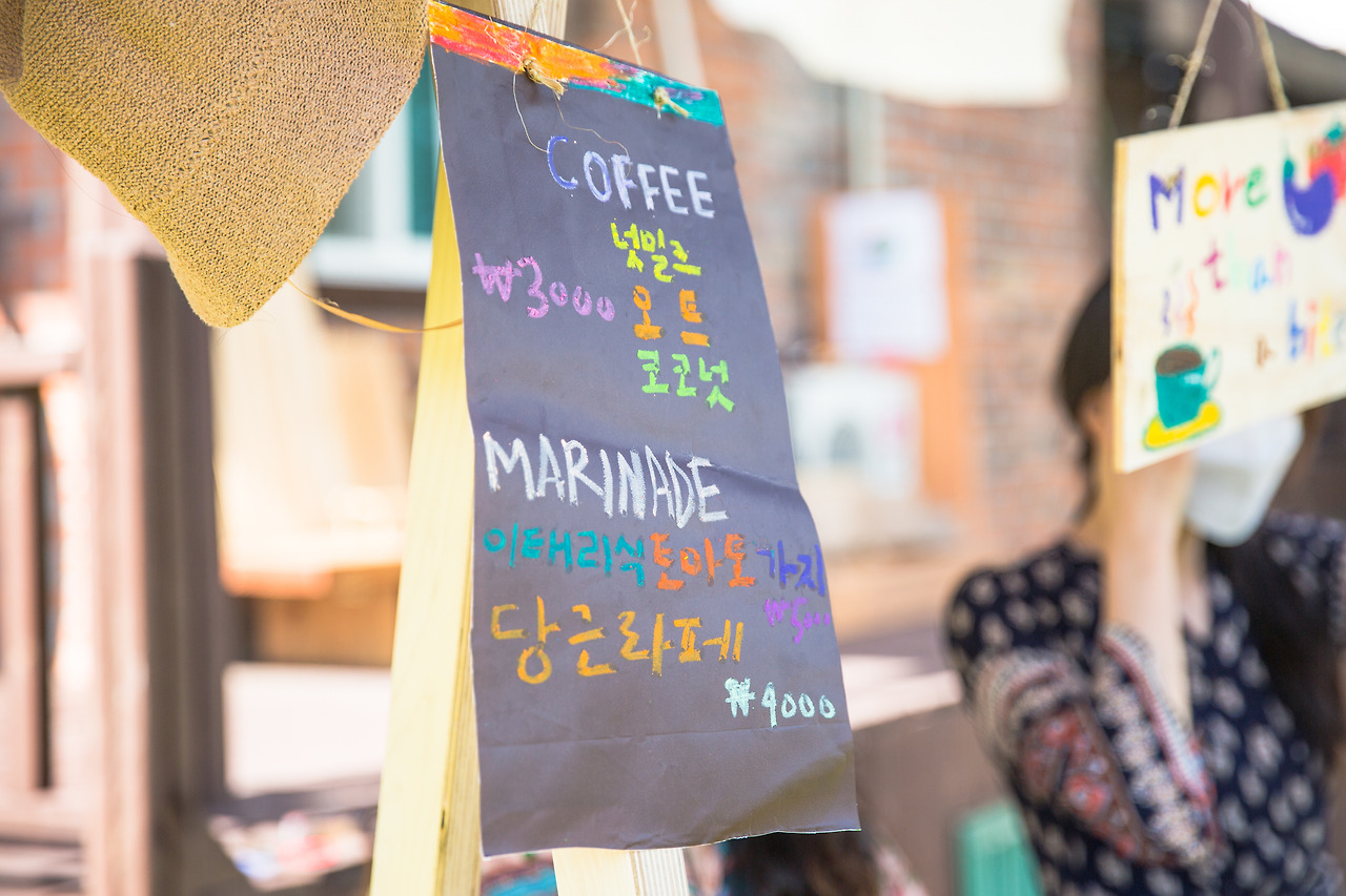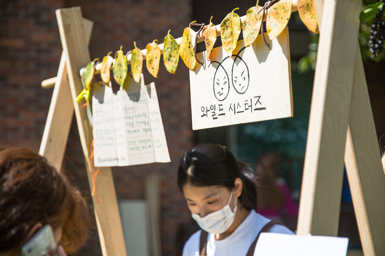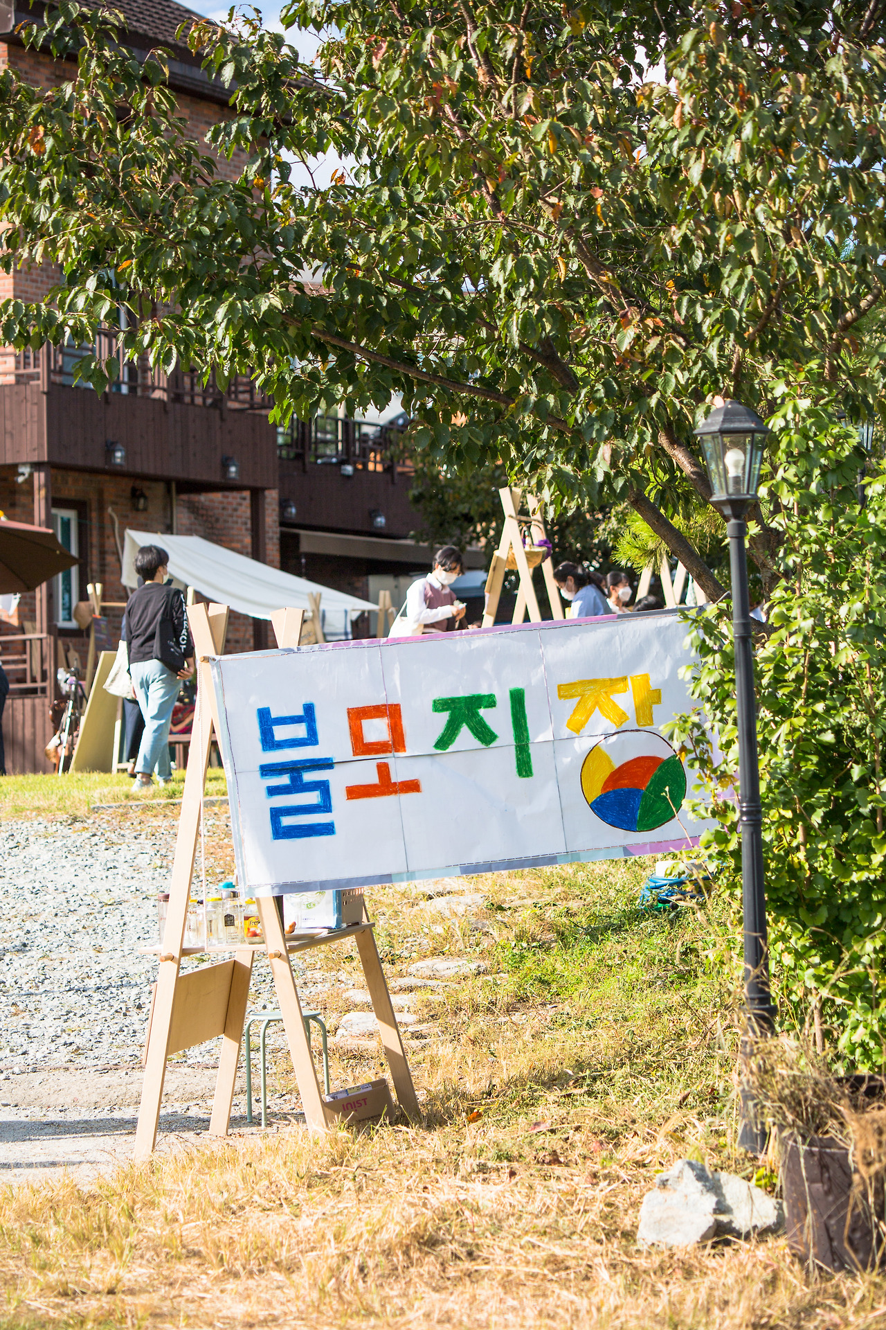부스명을 적을 부스별 팻말과 가격표 등은 가구 등을 제작하고 남은 목재들과 종이가방을 사용하기로 했다. 행사 당일, 셀러들이 각자의 팻말을 직접 꾸밀 수 있도록 시간을 배정했다. 부스와 부스를 운영하는 사람들의 결이 담긴 근사한 팻말과 각자 가져온 재료들로 부스가 꾸며졌다. 그덕에 장터가 더욱 빛이 났다. 알록달록.
