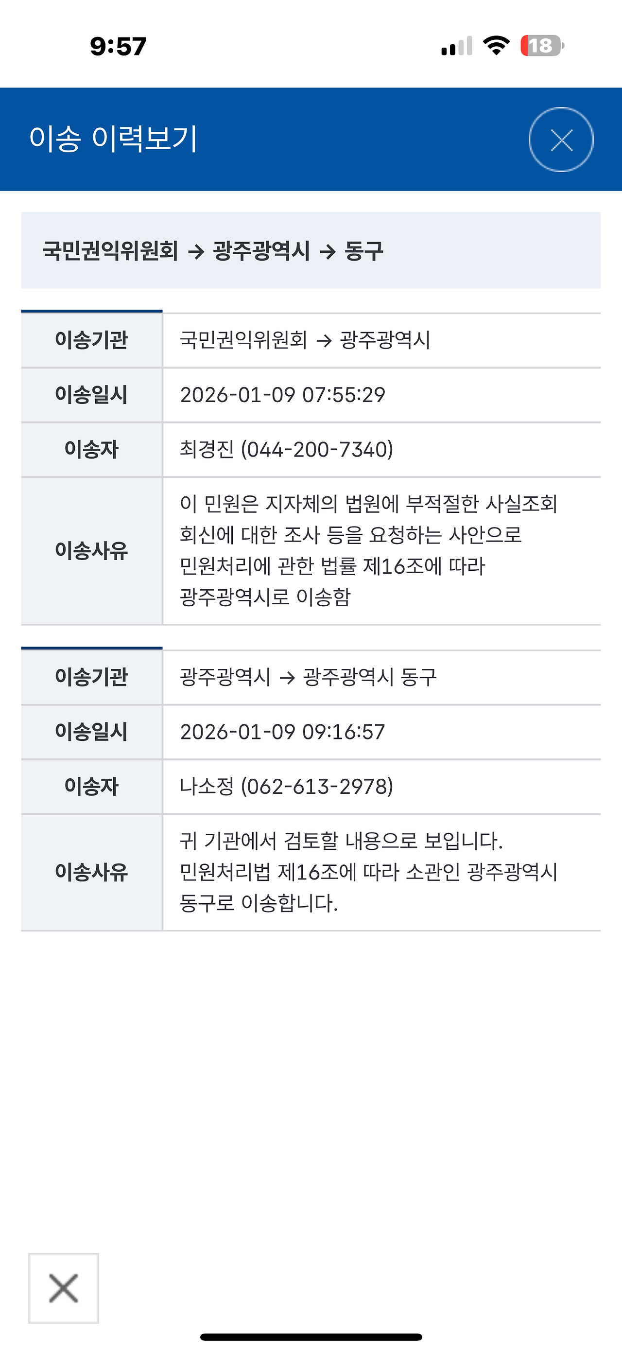 본 민원은 광주광역시 동구청이 과거 법원의 사실조회 요청에 회신하는 과정에서