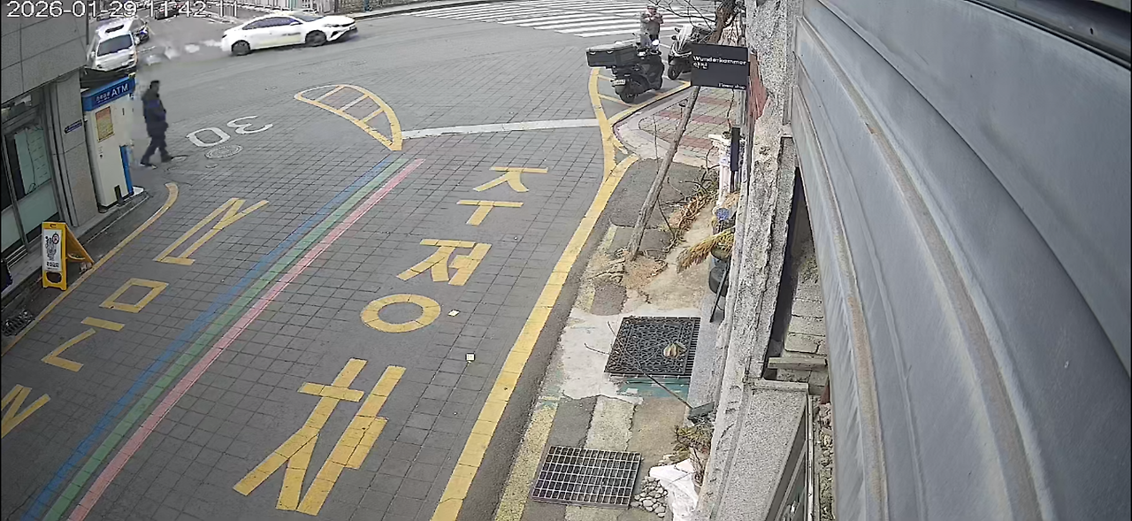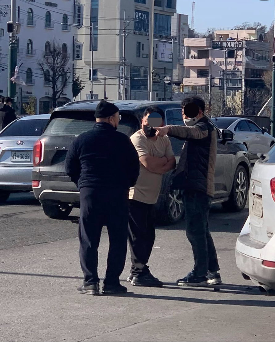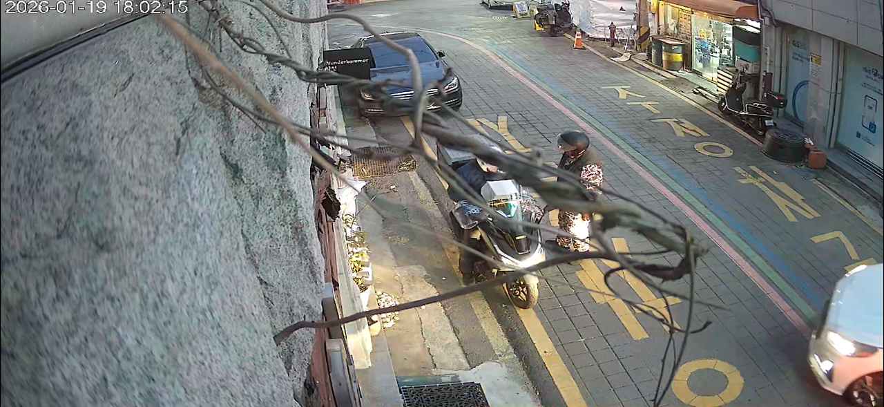 그런데 그 순간, 편의점에서 갑작스럽게 튀어나온 오토바이 운전자가 악을 지르며 말했다.