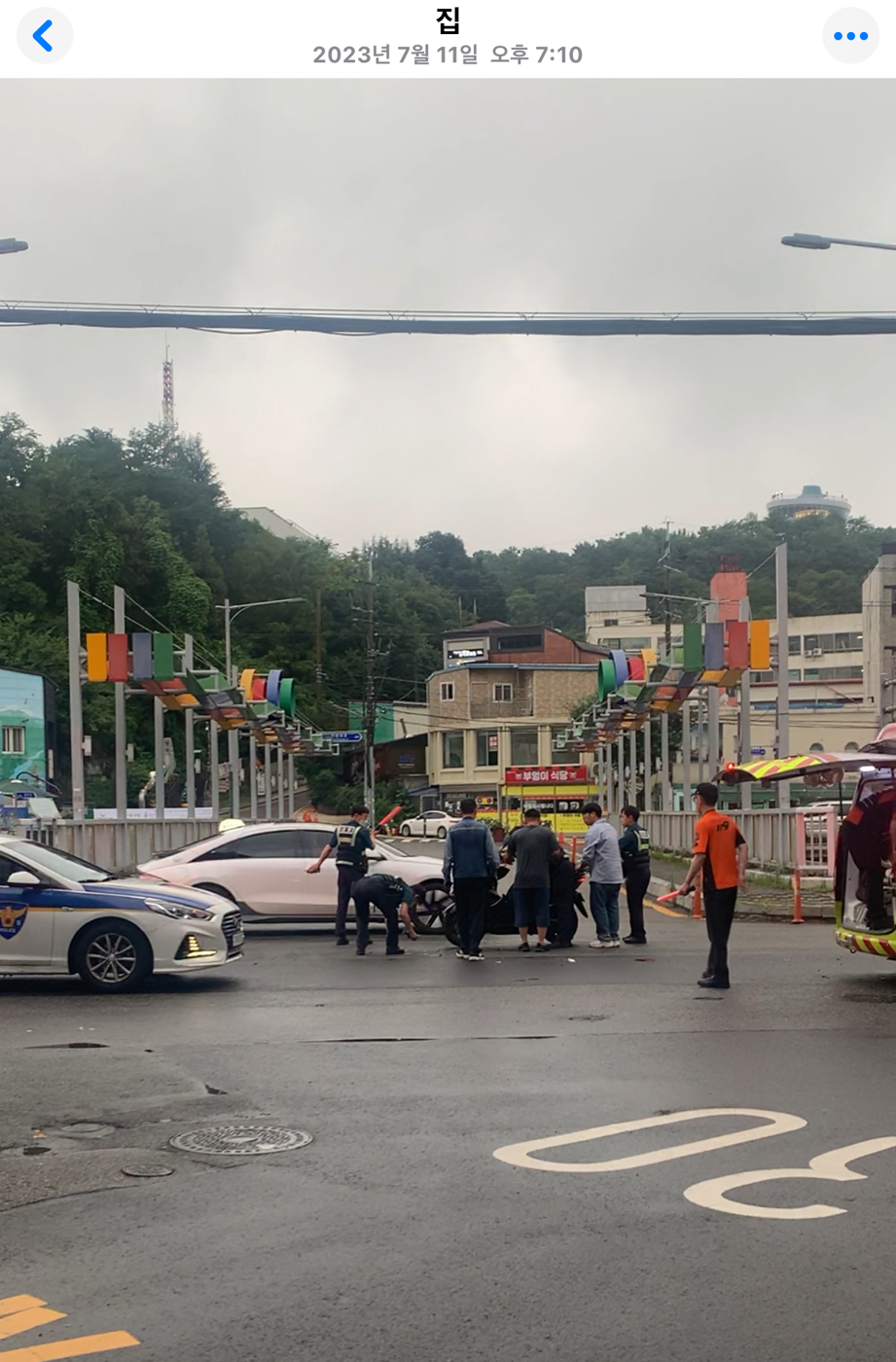 그 앞에서 오토바이 운전자가 급하게 달려나와 나에게 소리를 질렀다.