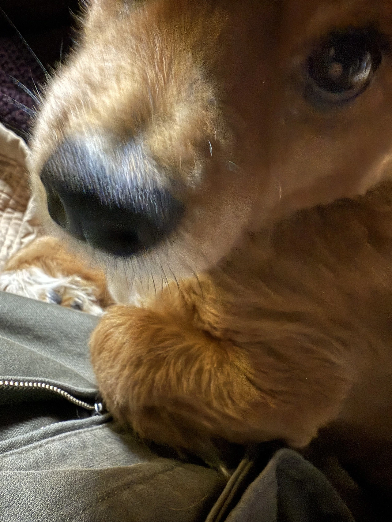 내 옆에는 작은 강아지가 앉아 있다.