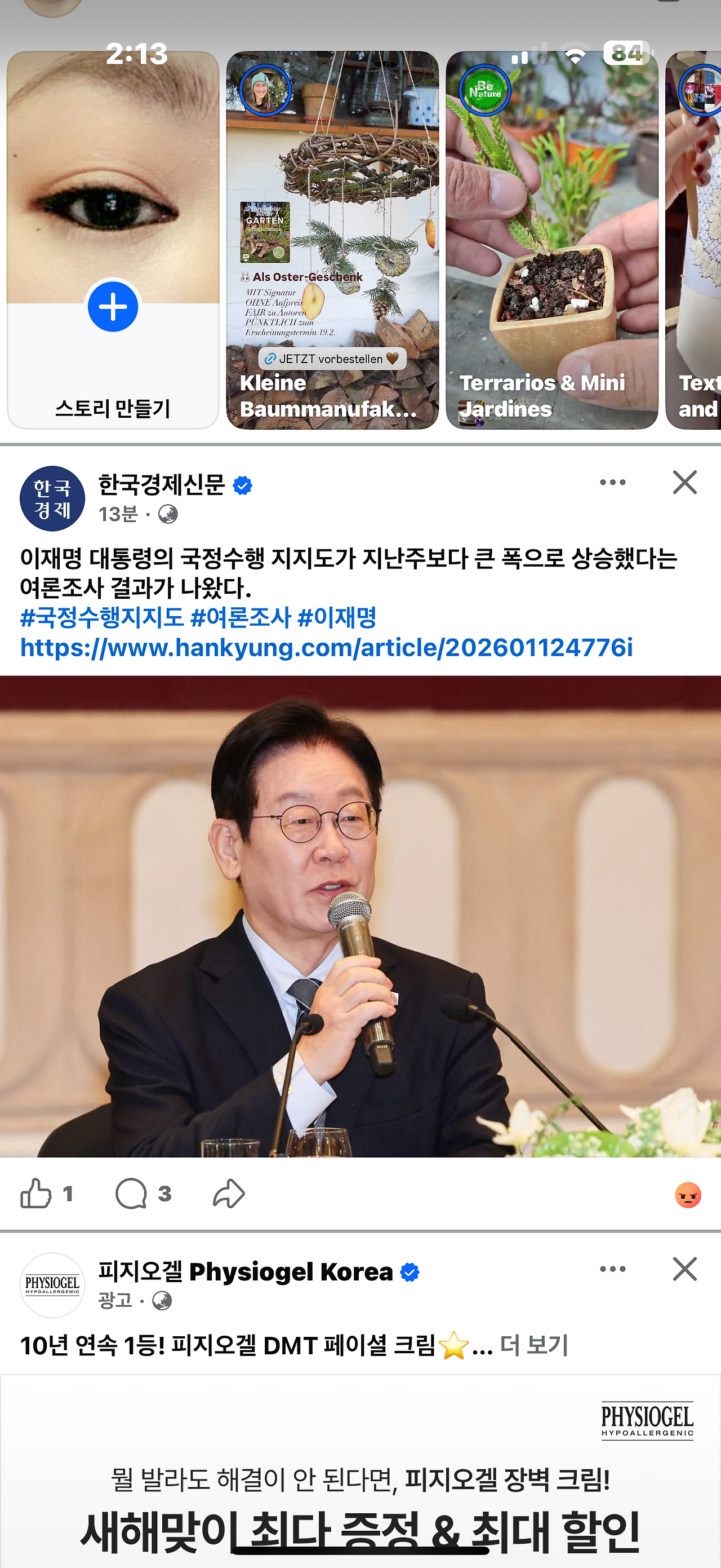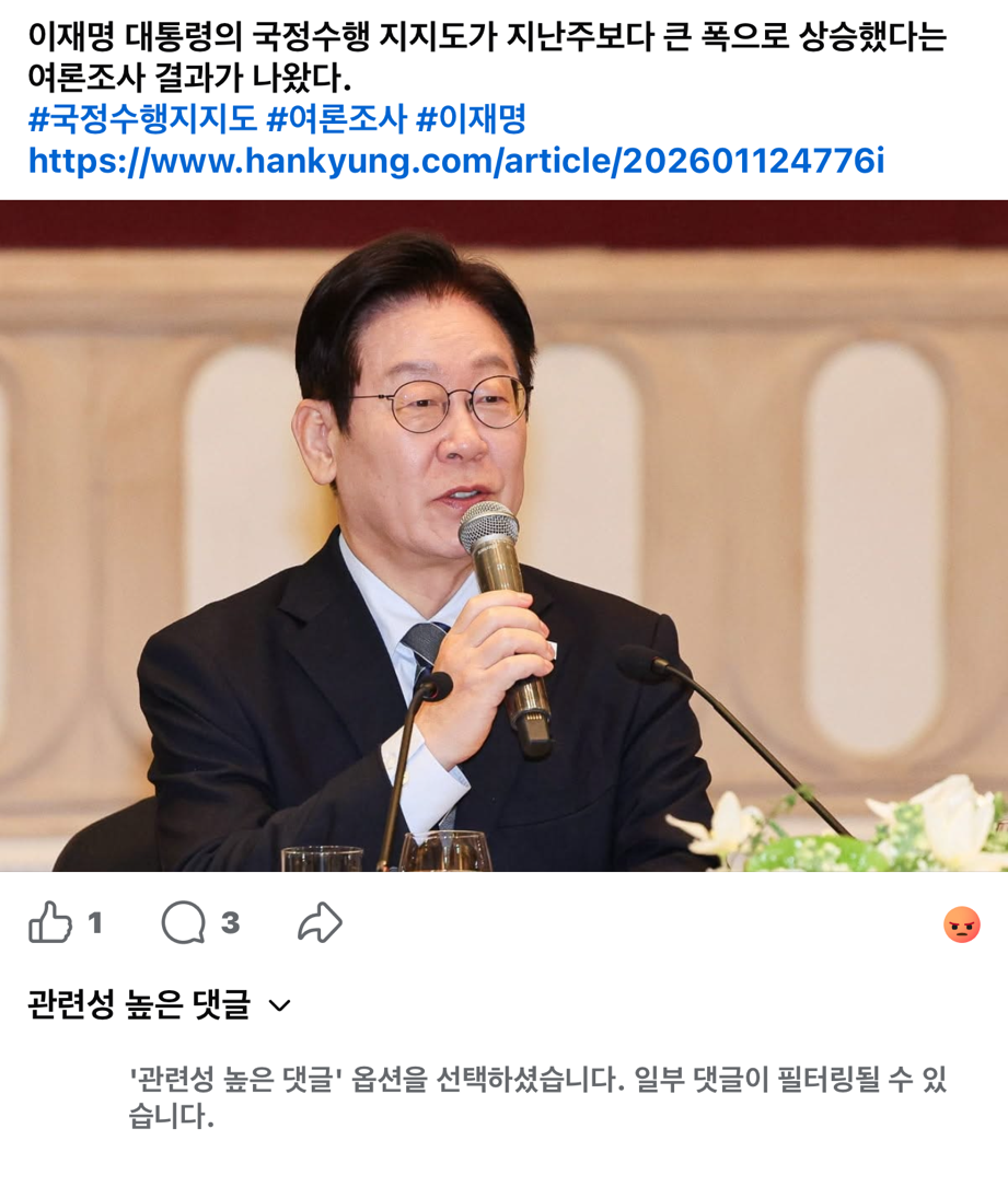 뉴스 피드에 그대로 떠 있는 화면이다.